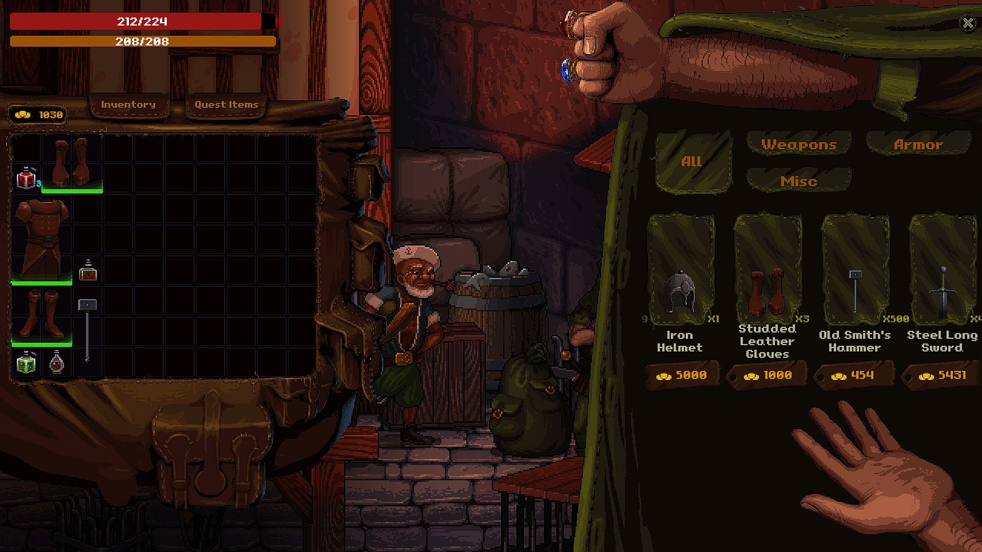 Greedventory is a gorgeous pixel-art linear action RPG experience, where the only thing standing between you and an embarrassingly swift death is your mouse. Strike, parry, and cast powerful spells on your enemies, loot increasingly magnificent treasures and equipment, get lost in a beautifully brutal world, take down a centuries old not-so-secret society, and become the hero you REALLY don’t want to be!