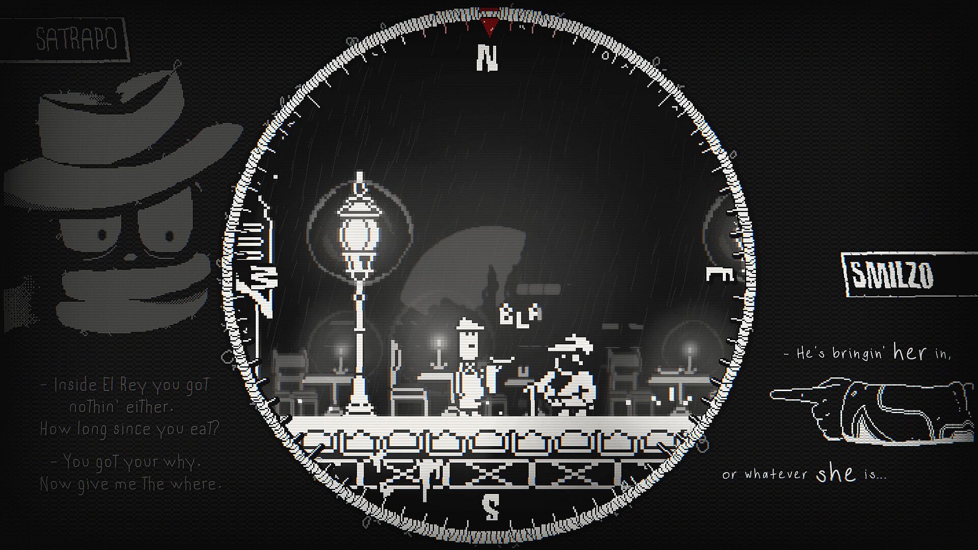 A noir 2D/3D platformer where a paranoid detective explores a sealed city through a rotating 2D view, in an obsessive hunt for the mysterious R.