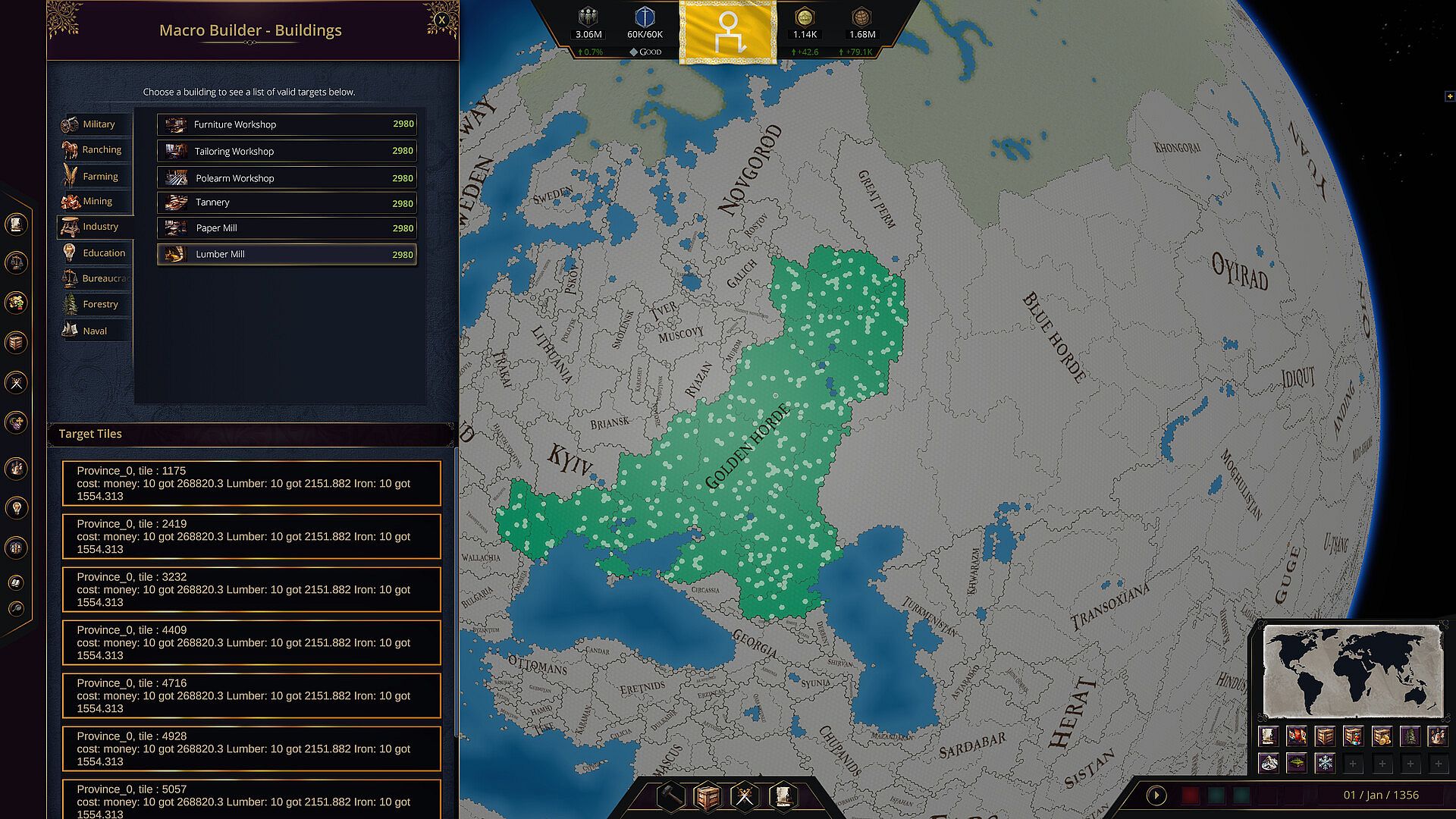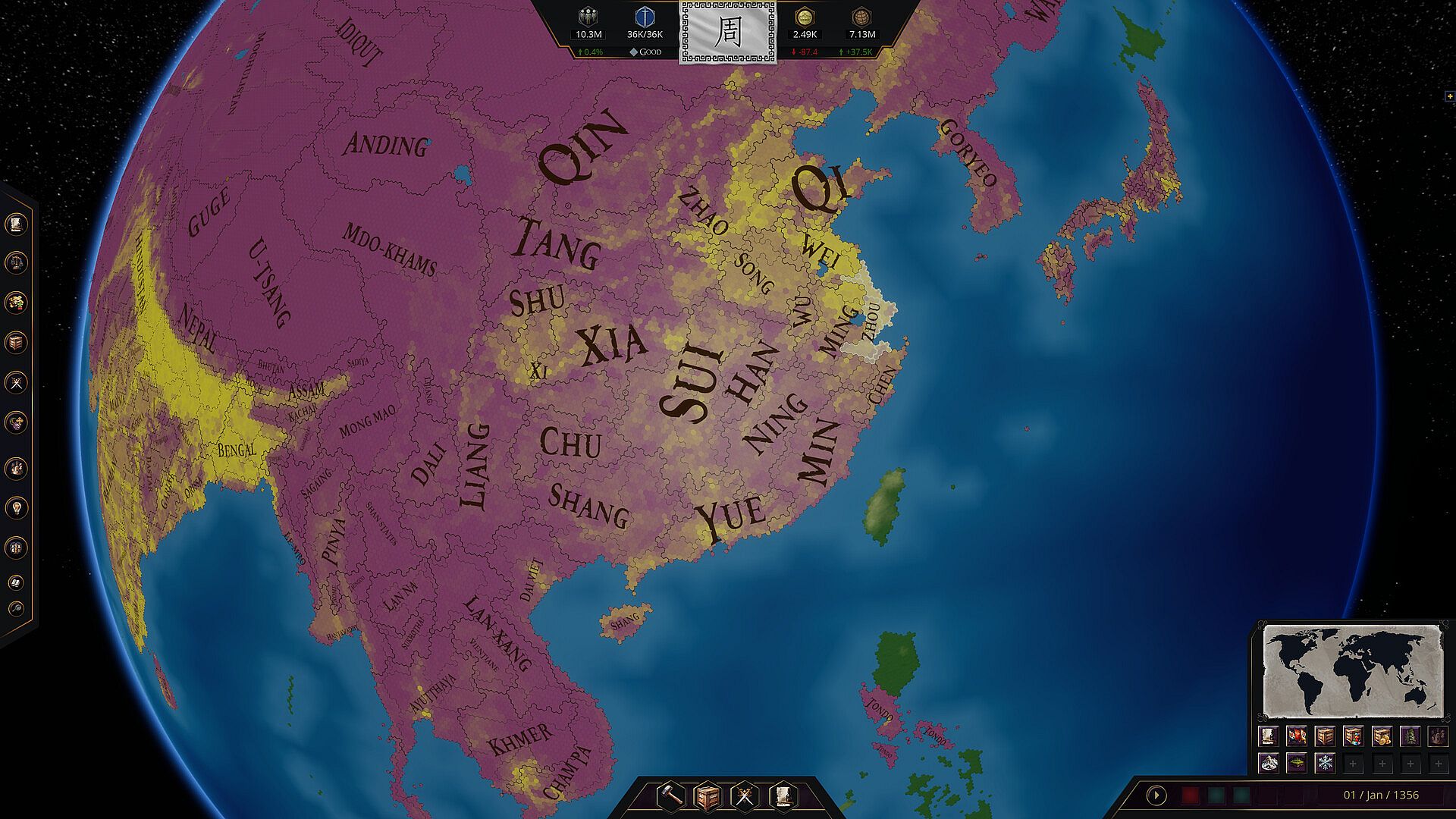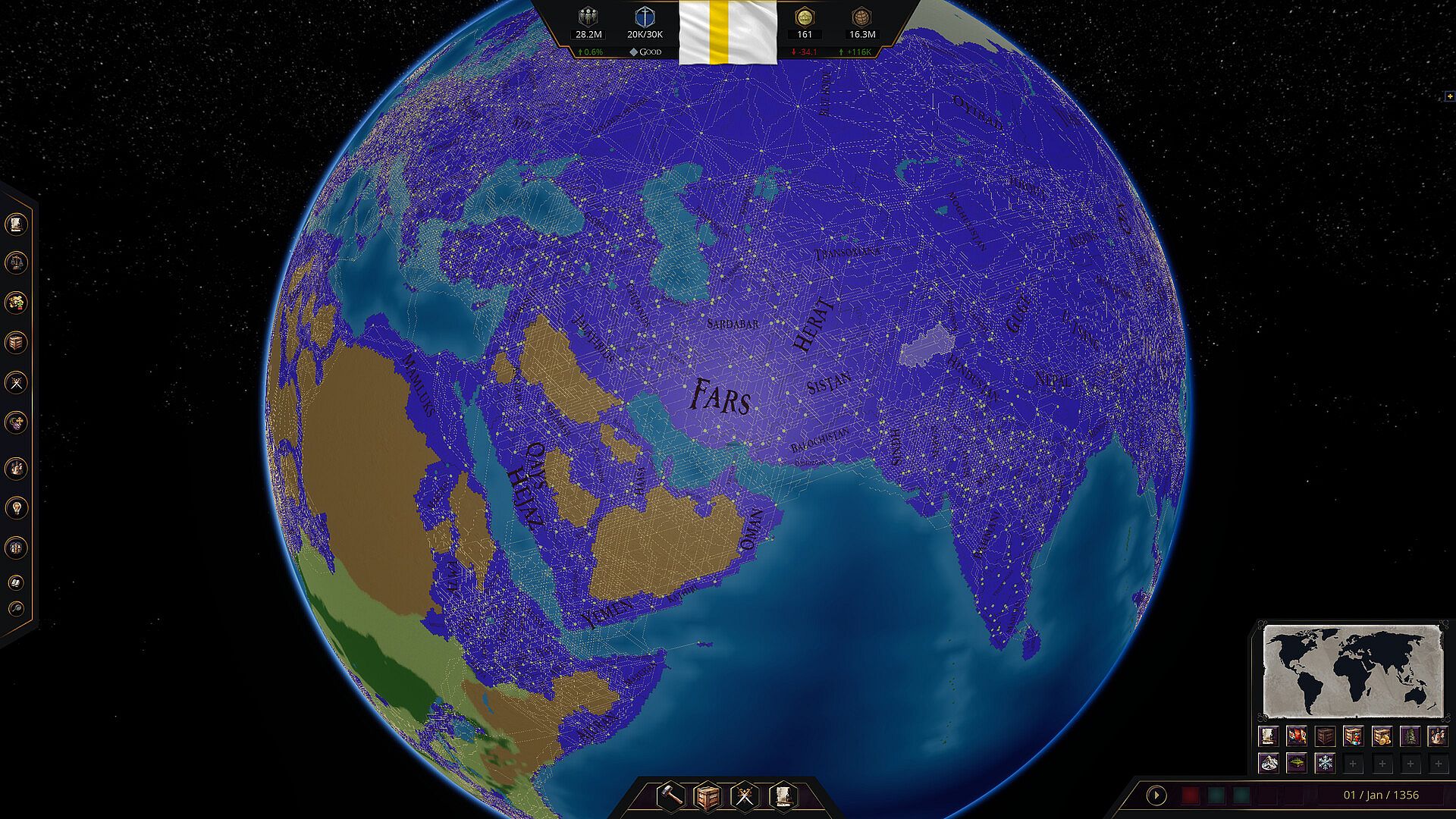 • A world of over 1,000,000 tiles, each with its own geography, population and buildings.
