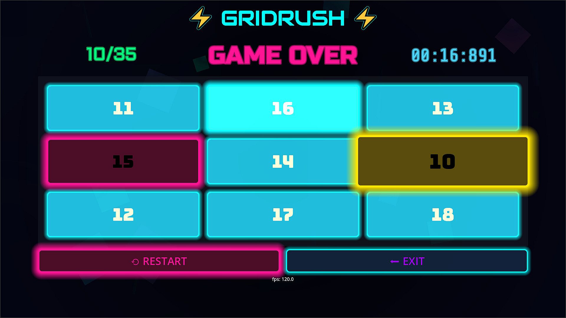 GRIDRUSH challenges your reflexes and mental agility in a deceptively simple, highly addictive puzzle format.