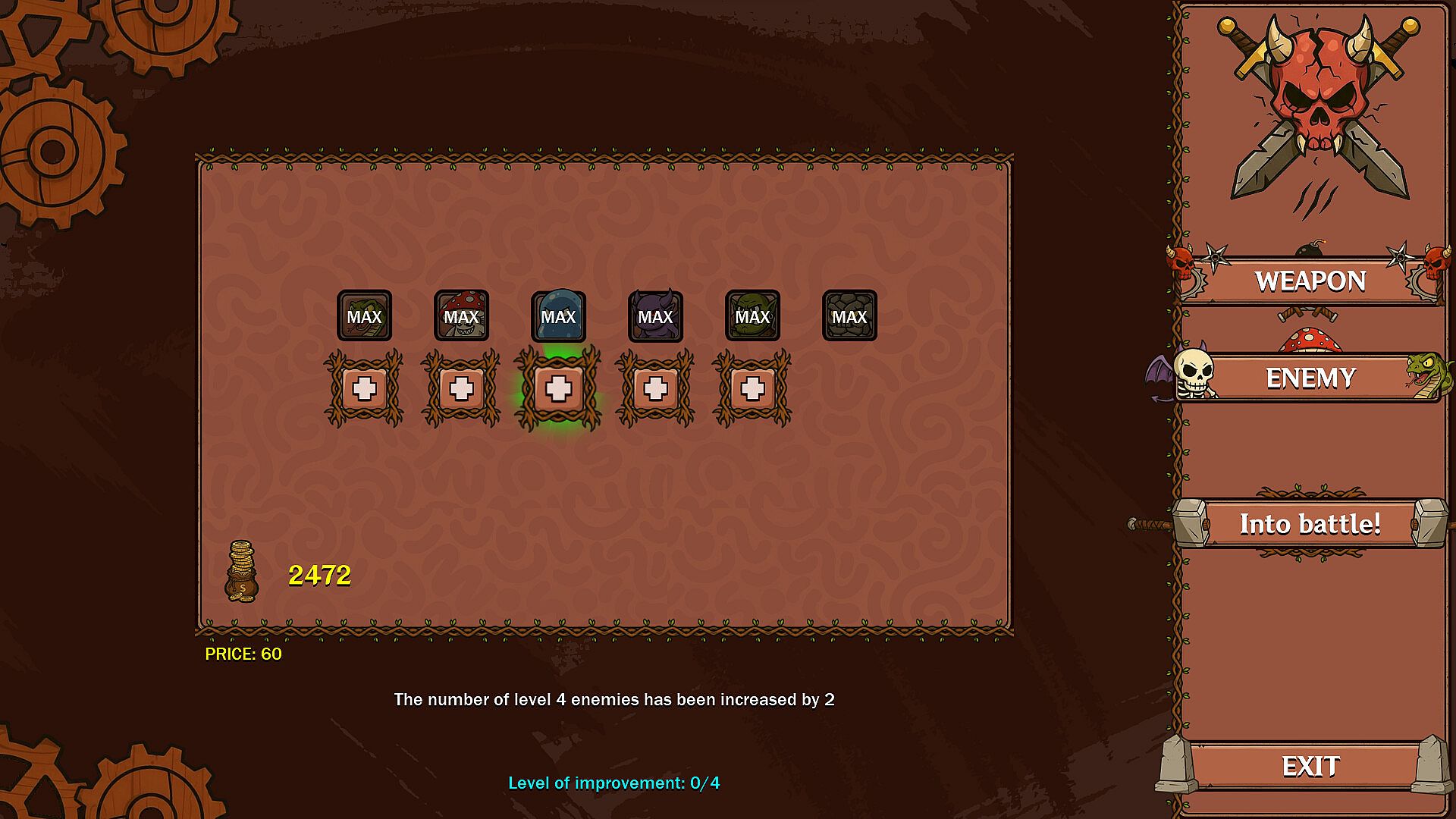 Different enemies drop different amounts of gold. Buy stronger enemies to earn more gold. Purchase enemy spawn rate boosts to quickly crush waves and earn even more gold. Plan your moves carefully, and you will prevail!
