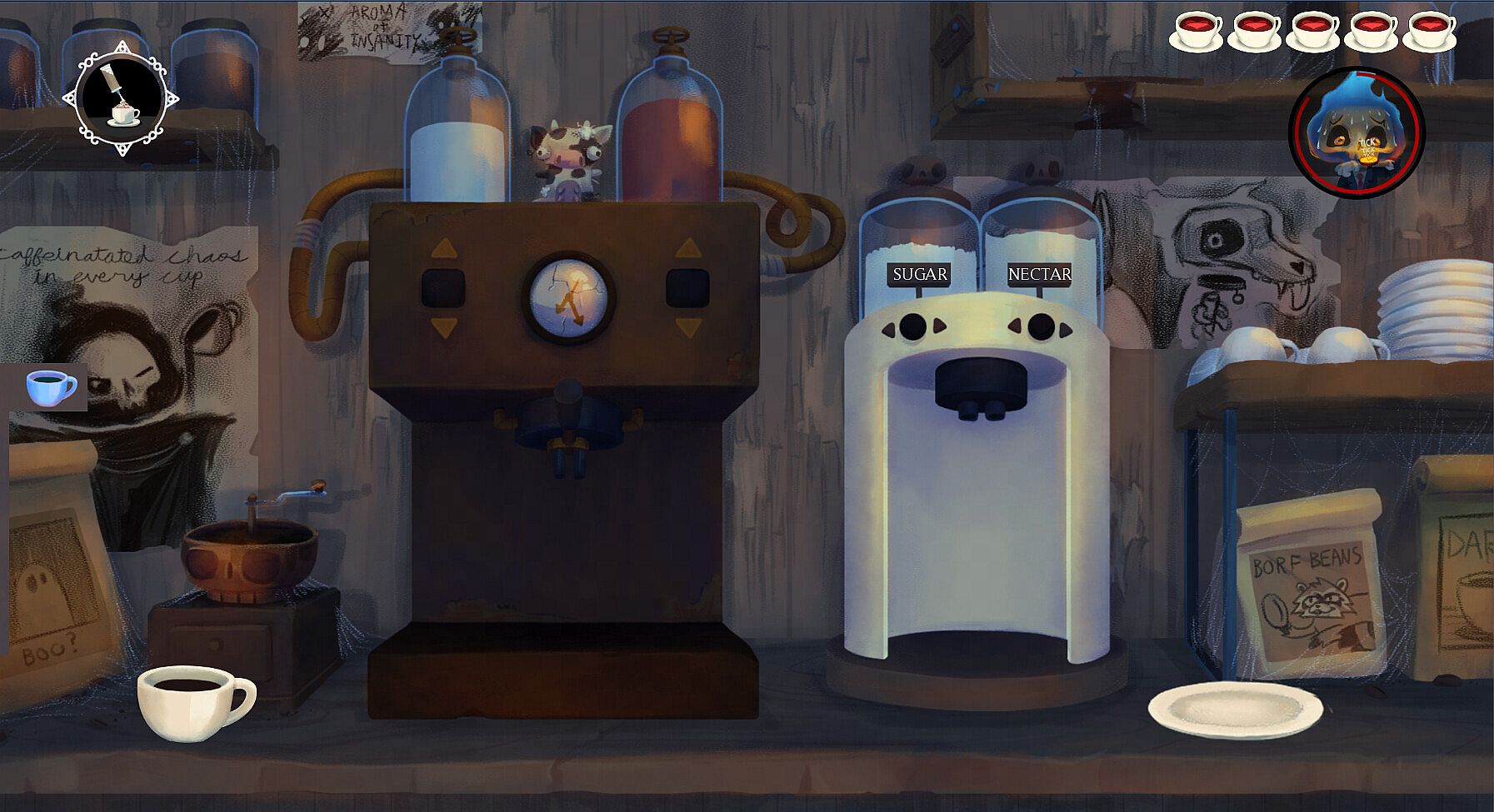 In Chapter 2 of Grim's Gambit, players continue Nox's thrilling journey through the Stygian Keep. Following the chaotic and darkly humorous events of the coffee shop, Nox faces new challenges and uncovers deeper mysteries. As he navigates through the Stygian Keep, he must manage the bustling demands of the coffee shop, meet intriguing new characters, and investigate the hidden secrets of this eerie realm.