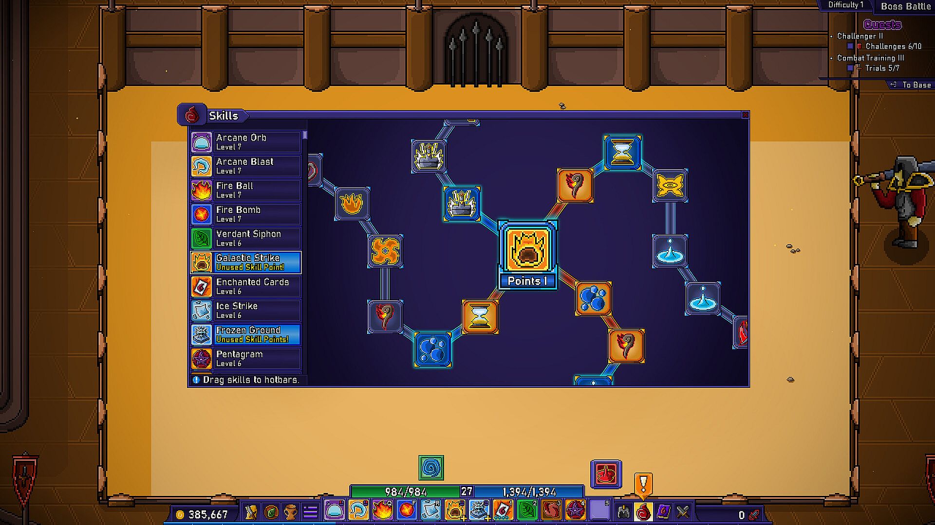 You receive a Talent Point each time you level up. Skills can level up, giving you ways to customize them.