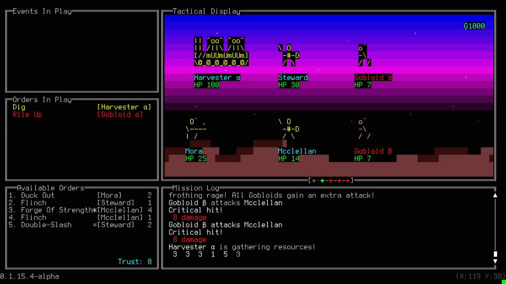 ASCII-driven Sci-Fi RPG GRIST is by turns a table-top inspired roguelike, futuristic apartment simulator, and deck-building card battler. Explore the tiered lands of the mysterious videogame Atropos: where items found in the game have a strange way of showing up in real life.