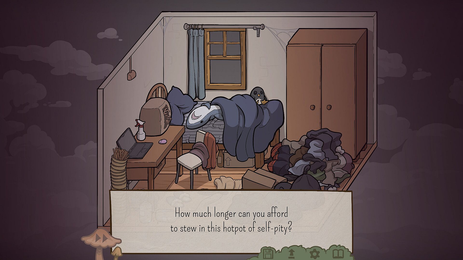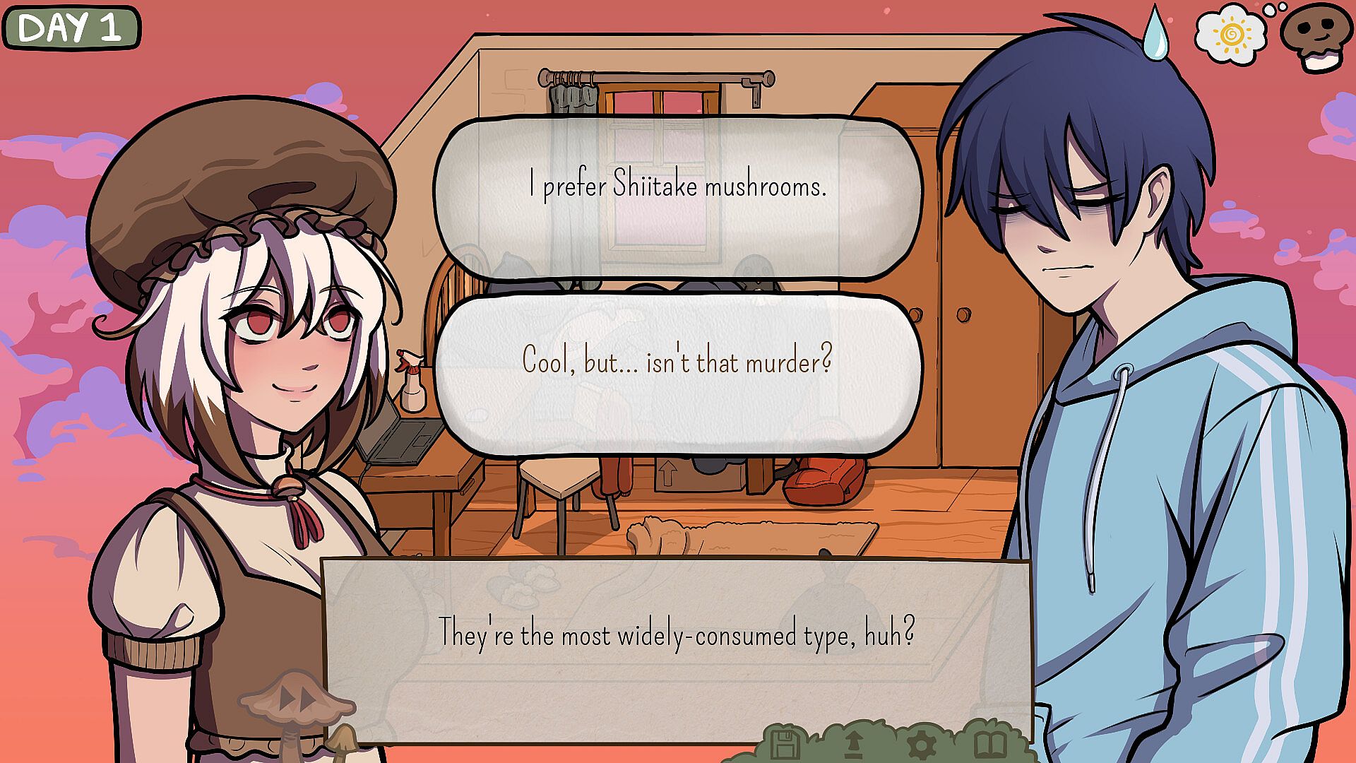 Manage your mushroom's mental health and affection carefully. All characters have their own personalities and unique struggles - including you! Make your story as horrific or as heart-warming as you desire!