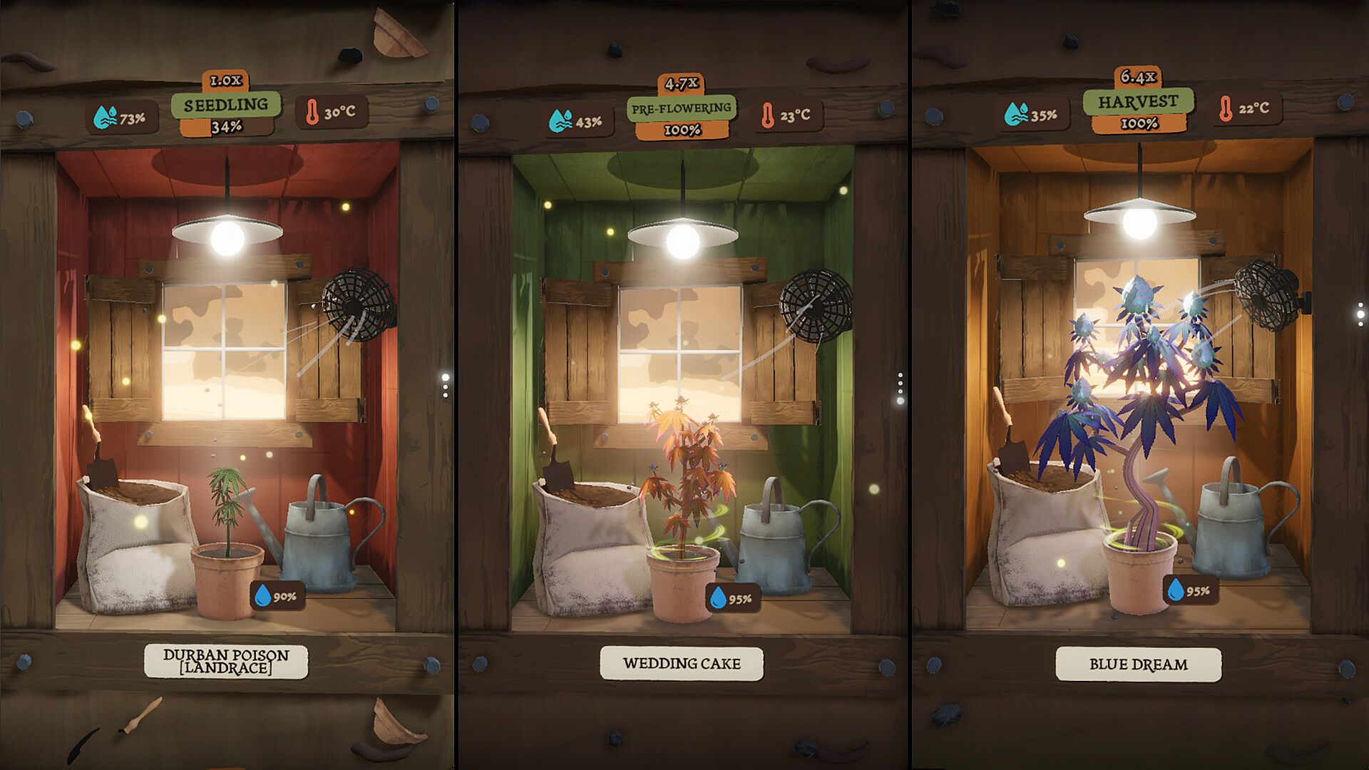 Upgrade your equipment through better lighting and advanced gear that helps tackle higher-level strain challenges. Purchase care buffs from the Vending Machine to temporarily boost plant health, growth speed, or other attributes. Find hidden items scattered throughout your experience that unlock special bonuses and customisation options.