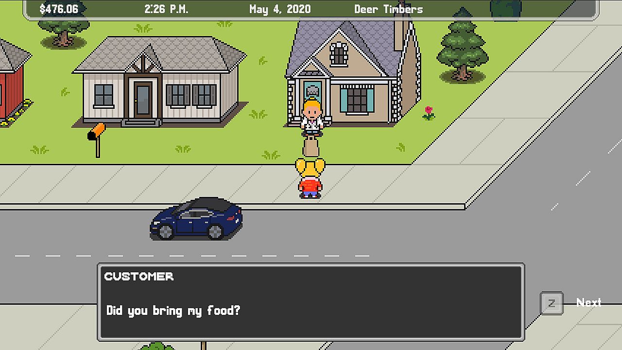 It's the year 2020. A mysterious, unknown event has decimated the economy and left many individuals, including you, the main character, unemployed. Unfortunately, you still have bills to pay. The good news is that the GrubDash food delivery platform is recruiting delivery drivers!