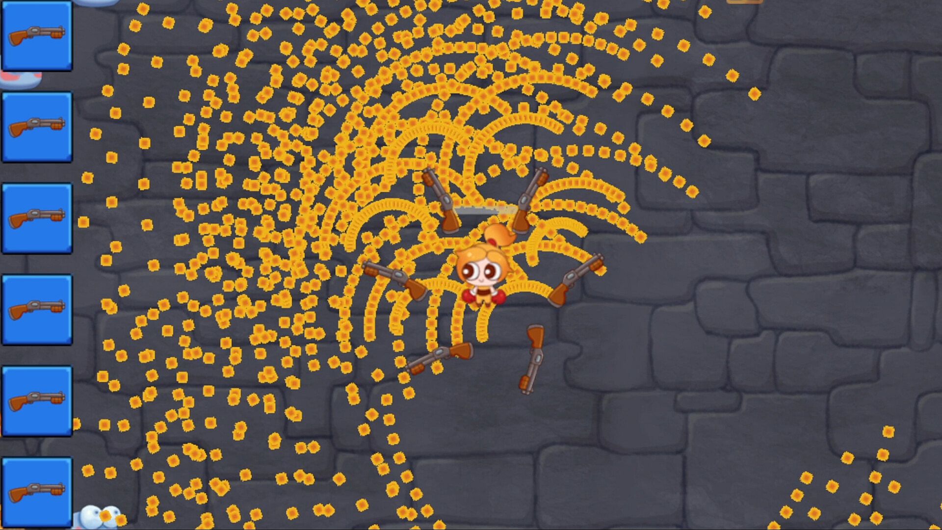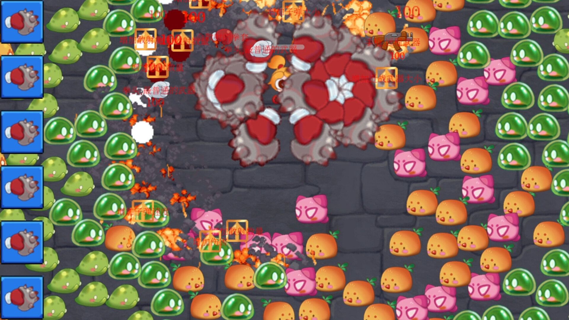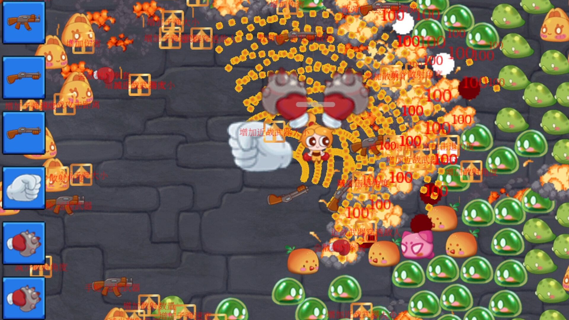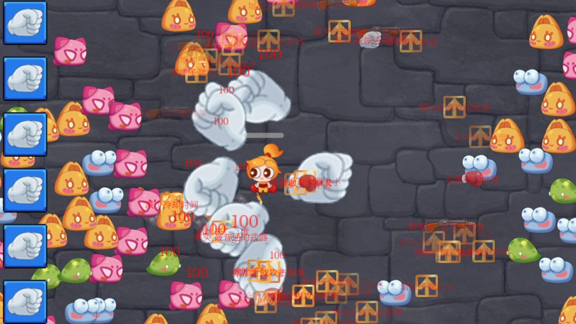 The player has only one pair of hands at the beginning. He enters an endless monster tower and equips himself by defeating monsters and exploding equipment. In addition to equipment, monsters will also drop various upgrade props, such as increasing the number of scattering, increasing the attack range, etc. Players can freely combine these characteristics to build customized weapons and build various different schools.