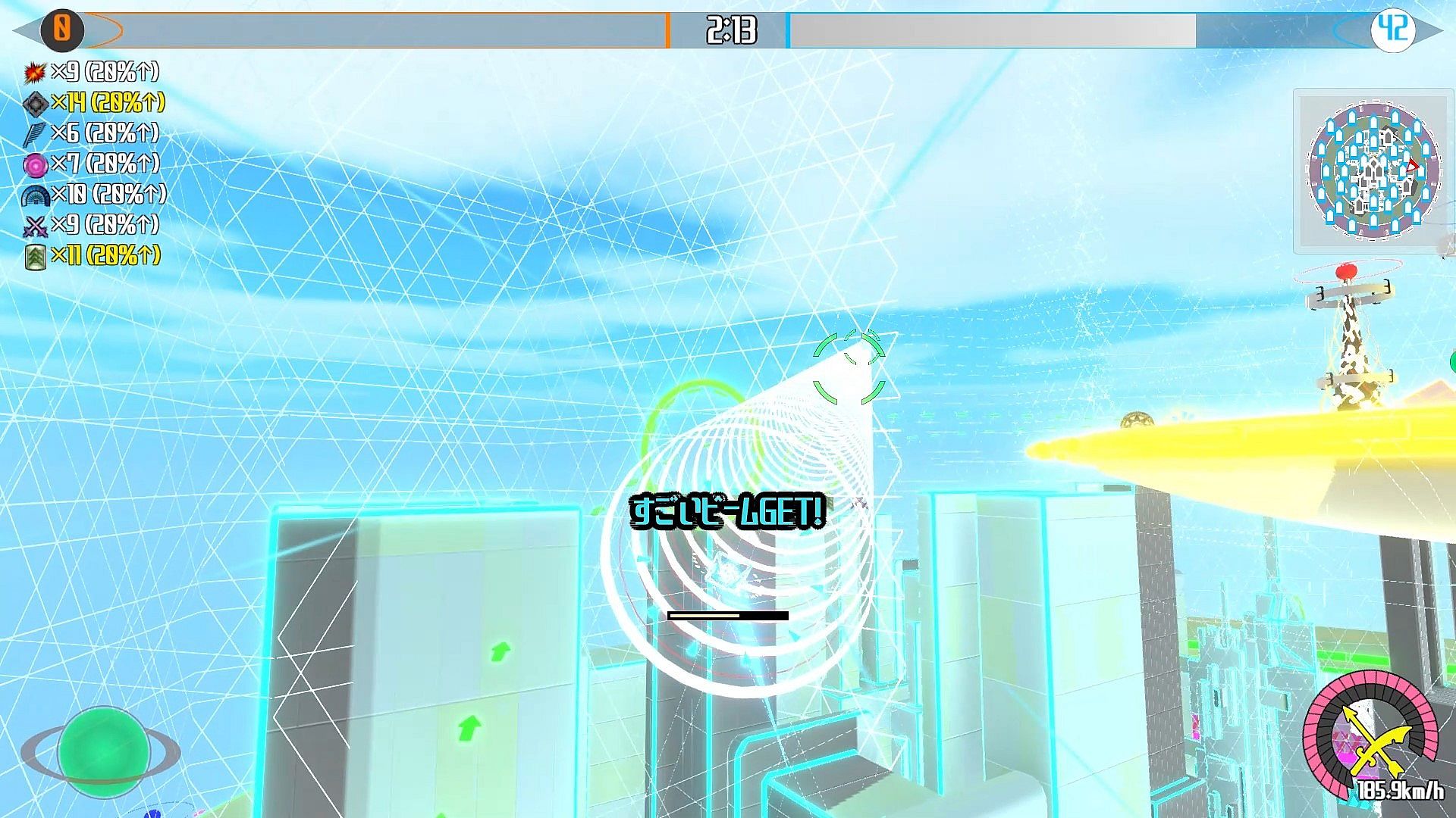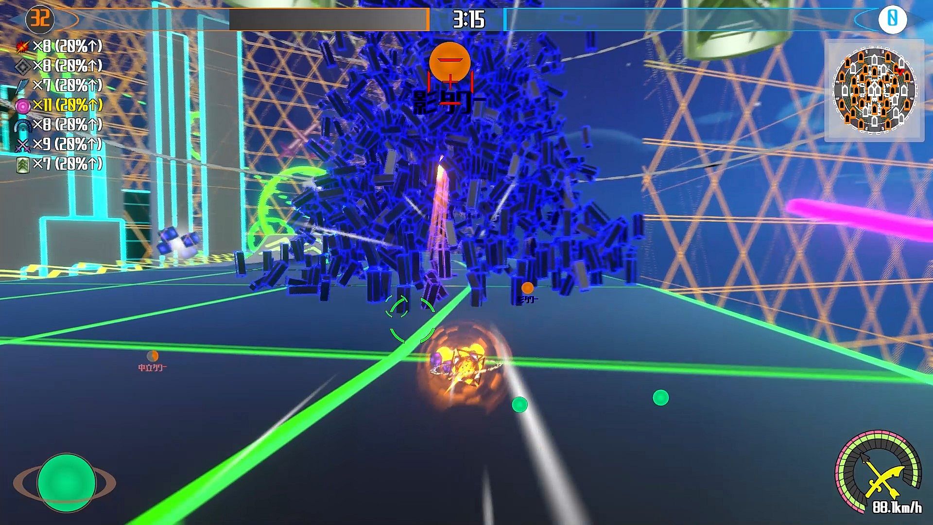 Players ride on a machine which moves automatically and occupy "Tower" which are placed in the stage whose concept is the near future.