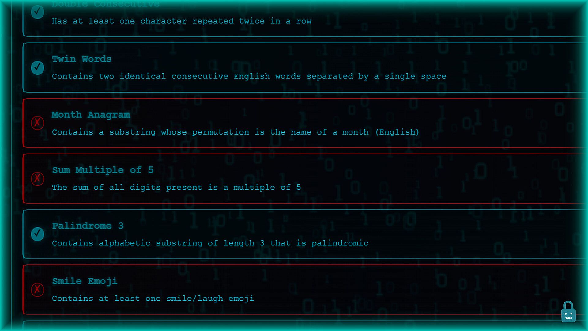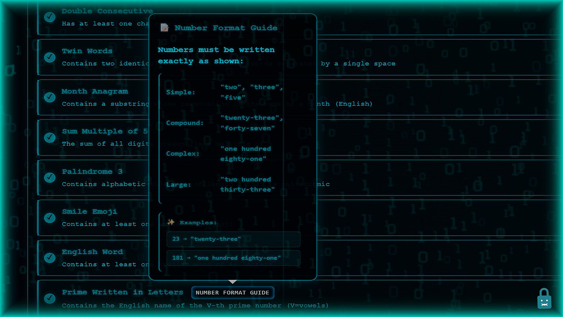 Solve 40 unique password puzzles that grow increasingly diabolical