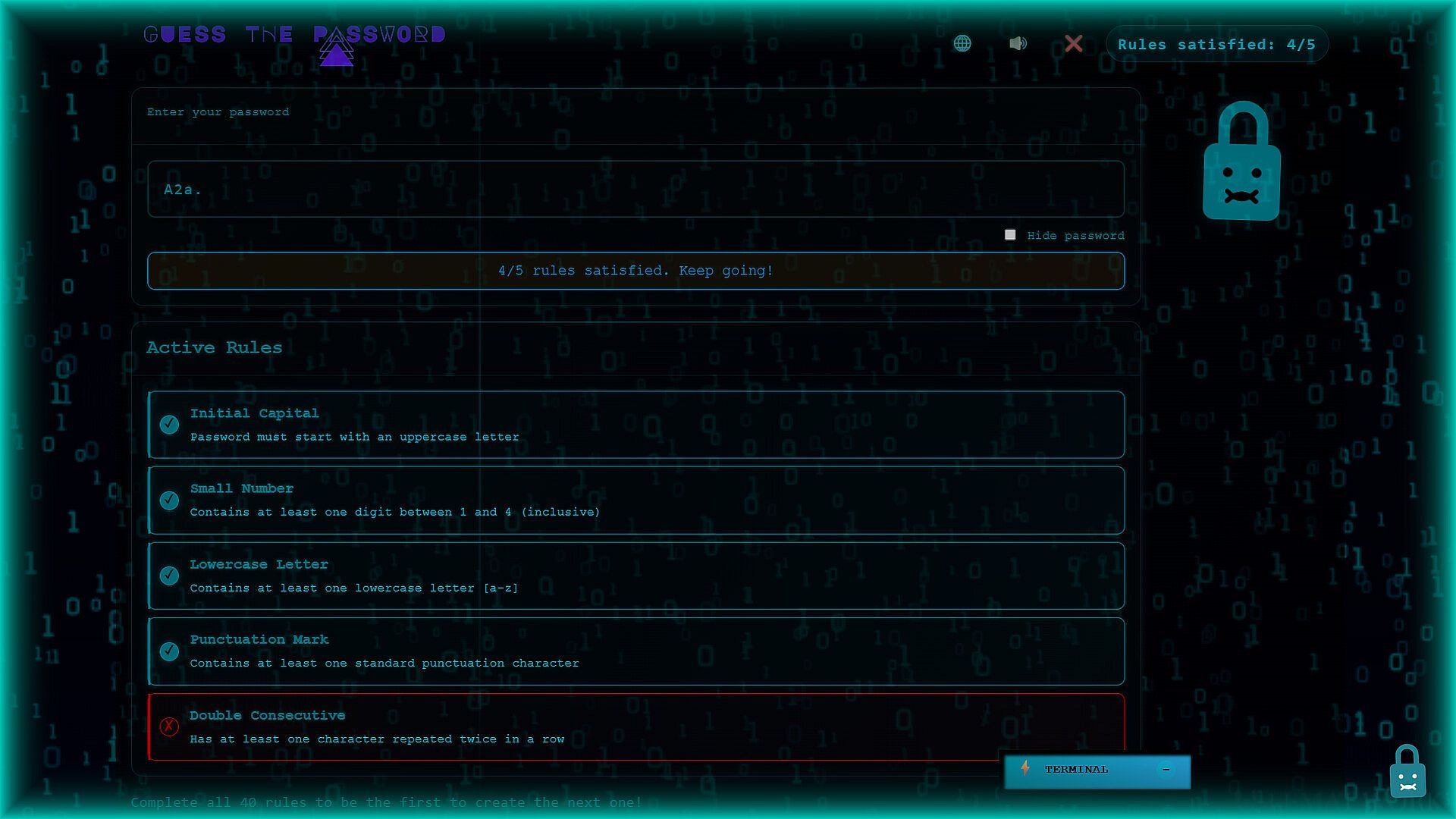 Forty progressively harder puzzles stand between you and the ultimate password.