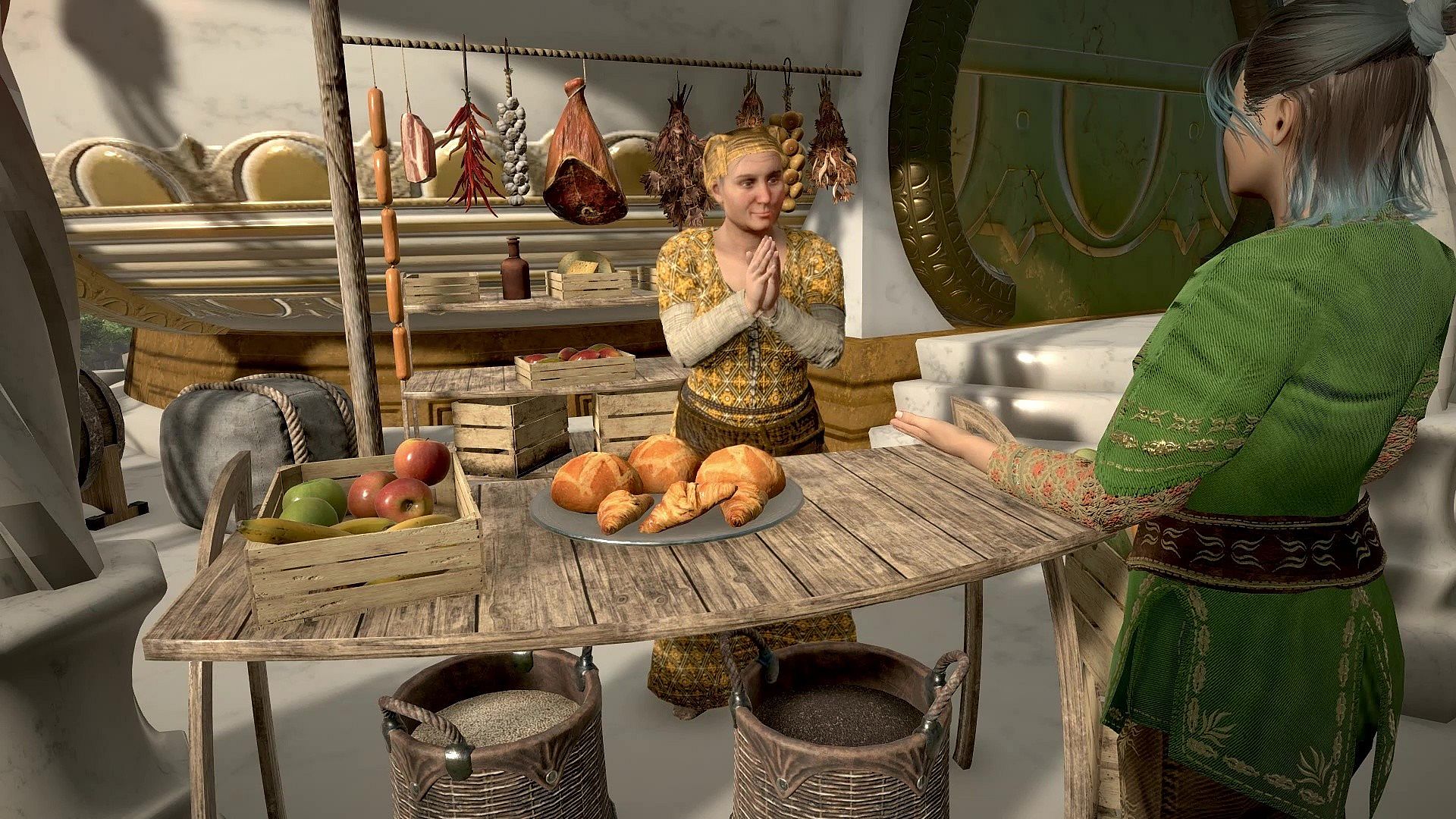 Trade with different merchants, each of which offers different goods.Depending on how close they are to your settlement and their specialization, buy and sell prices on their market may differ enormously.