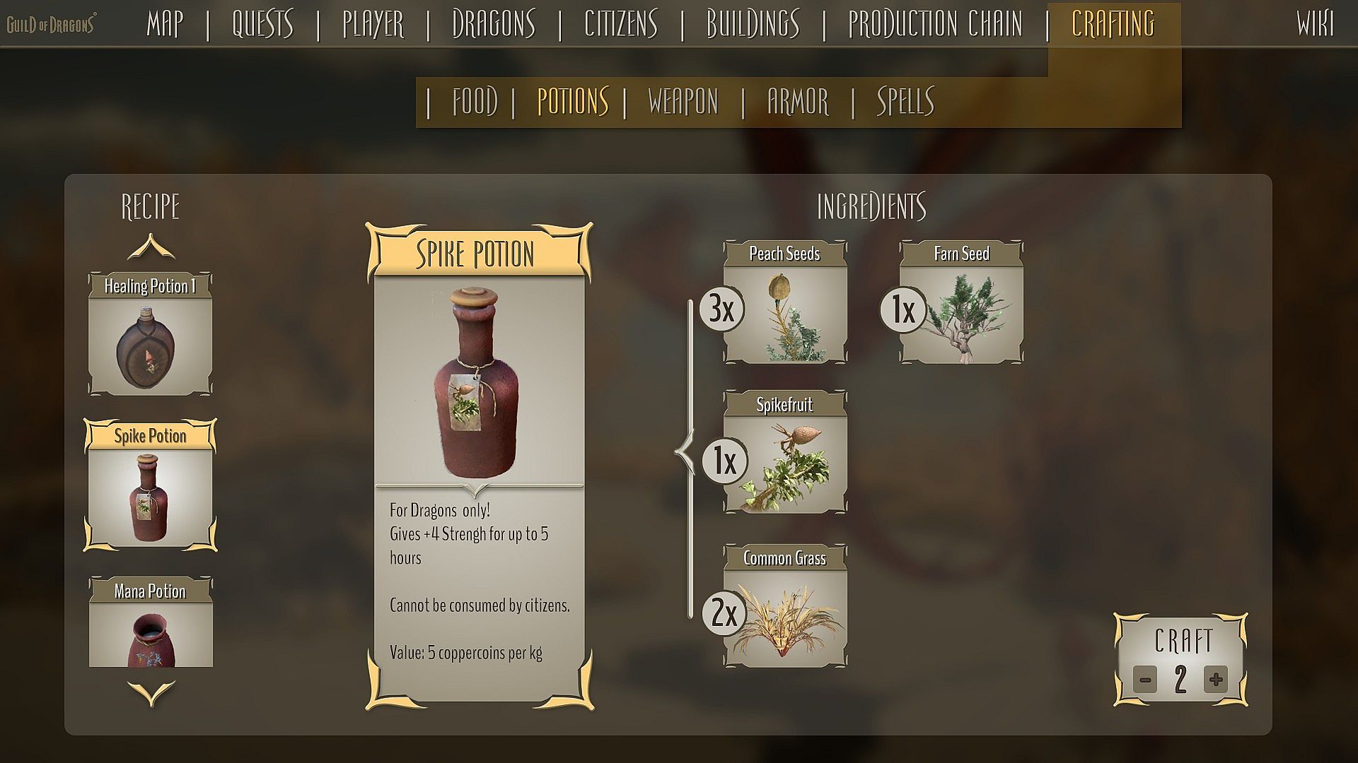 Choose from a variety of dragonfruits, crops, flowers, and herbs, either planted in the glasshouse, in the herbalist’s house, or on a farm.MINE AND CRAFT