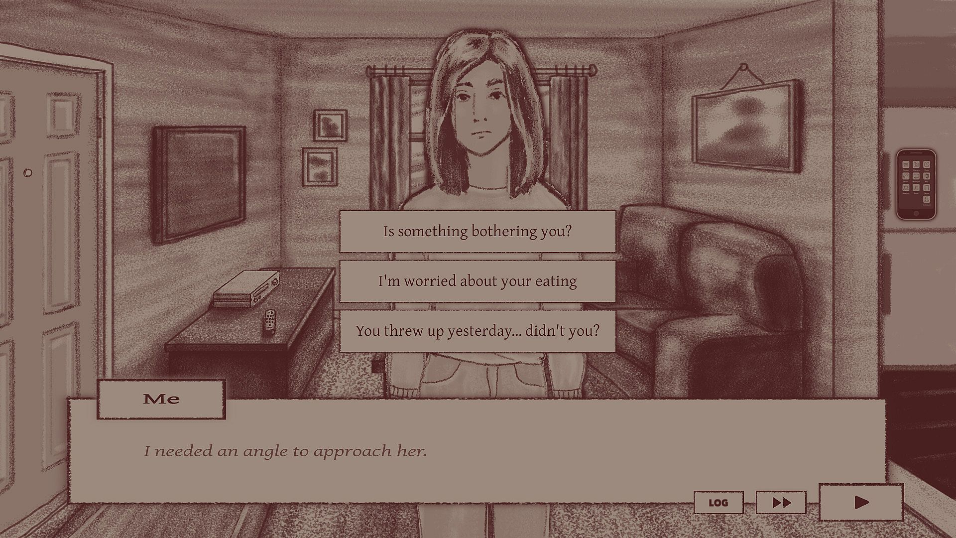Guilt Free is a visual novel crossed with a point and click made to offer perspective on mental health and eating disorders. Navigate a couple's rocky relationship and encounter "flaws" or "quirks" that may actually be symptomatic behaviors.