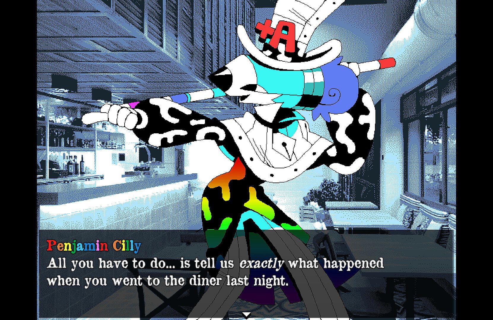 Guilt Trip is a visual novel about memory. It may not be a mystery from your perspective, but that doesn't mean you shouldn't be paying attention. In order to win, you need to keep a mental note of everything that did and didn't happen inside the Heartburn Diner. If you can do this, when it comes time for questioning, you'll know exactly how to bend the facts to your favor.