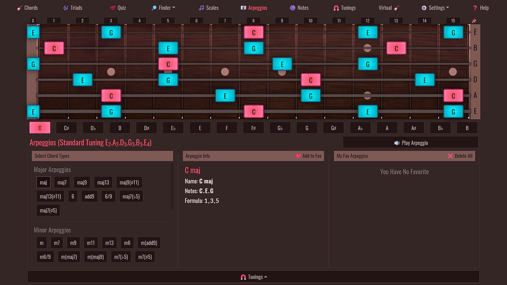 • Alternate Tunings Explored: Dive deep into 36 of the most popular alternate tunings, expanding your creative horizons. Whether you're in Standard or Alternate Tuning, access Scales, Arpeggios, and Fretboard Notes effortlessly. Guitar Tuner: Our improved tuning feature now allows you to tune your guitar by ear across a wide range of preset alternate tunings.