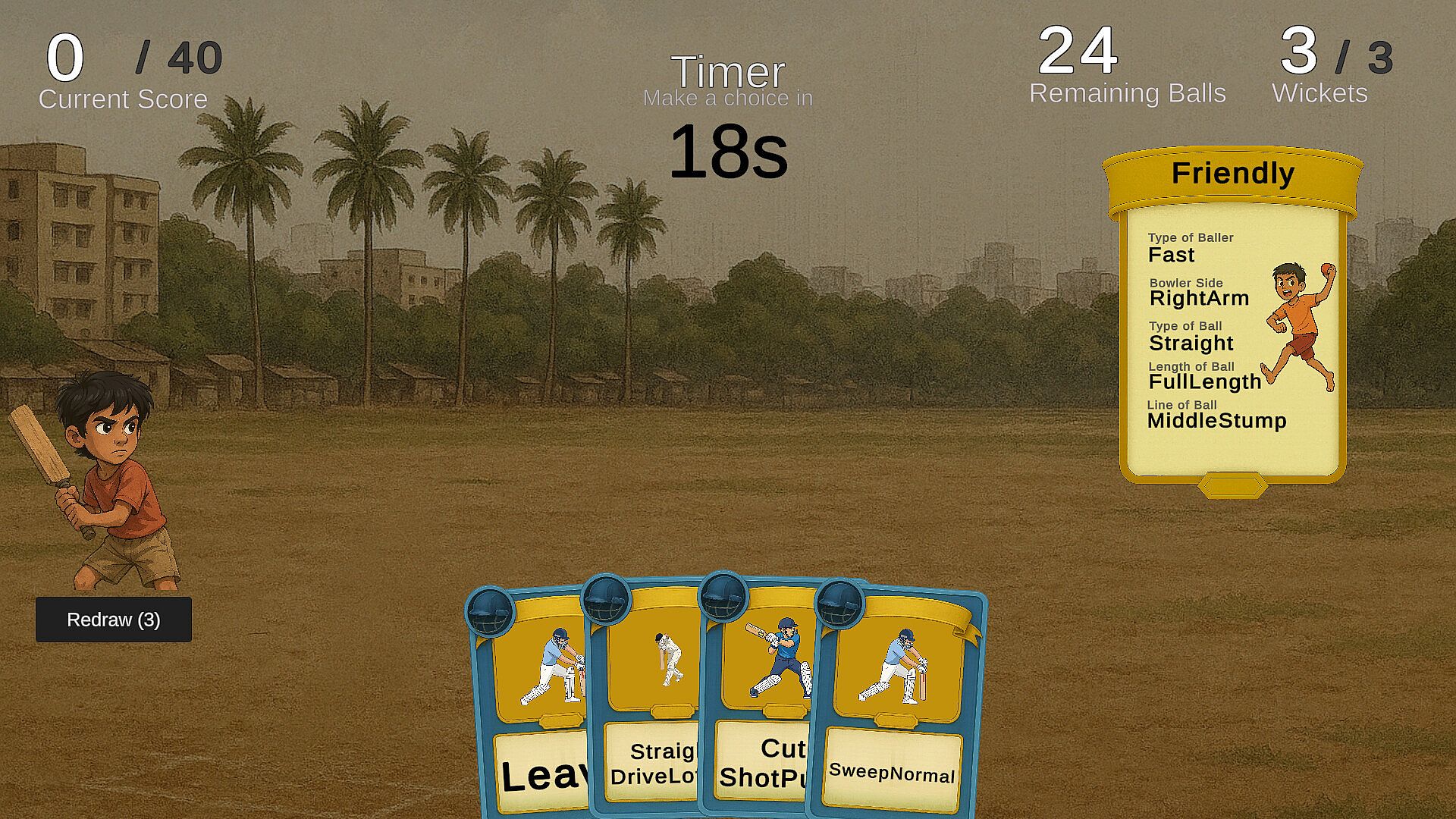 • Card-Based Match System: Use your deck of batting shots batting shots  and special abilities to become a cricket legend.