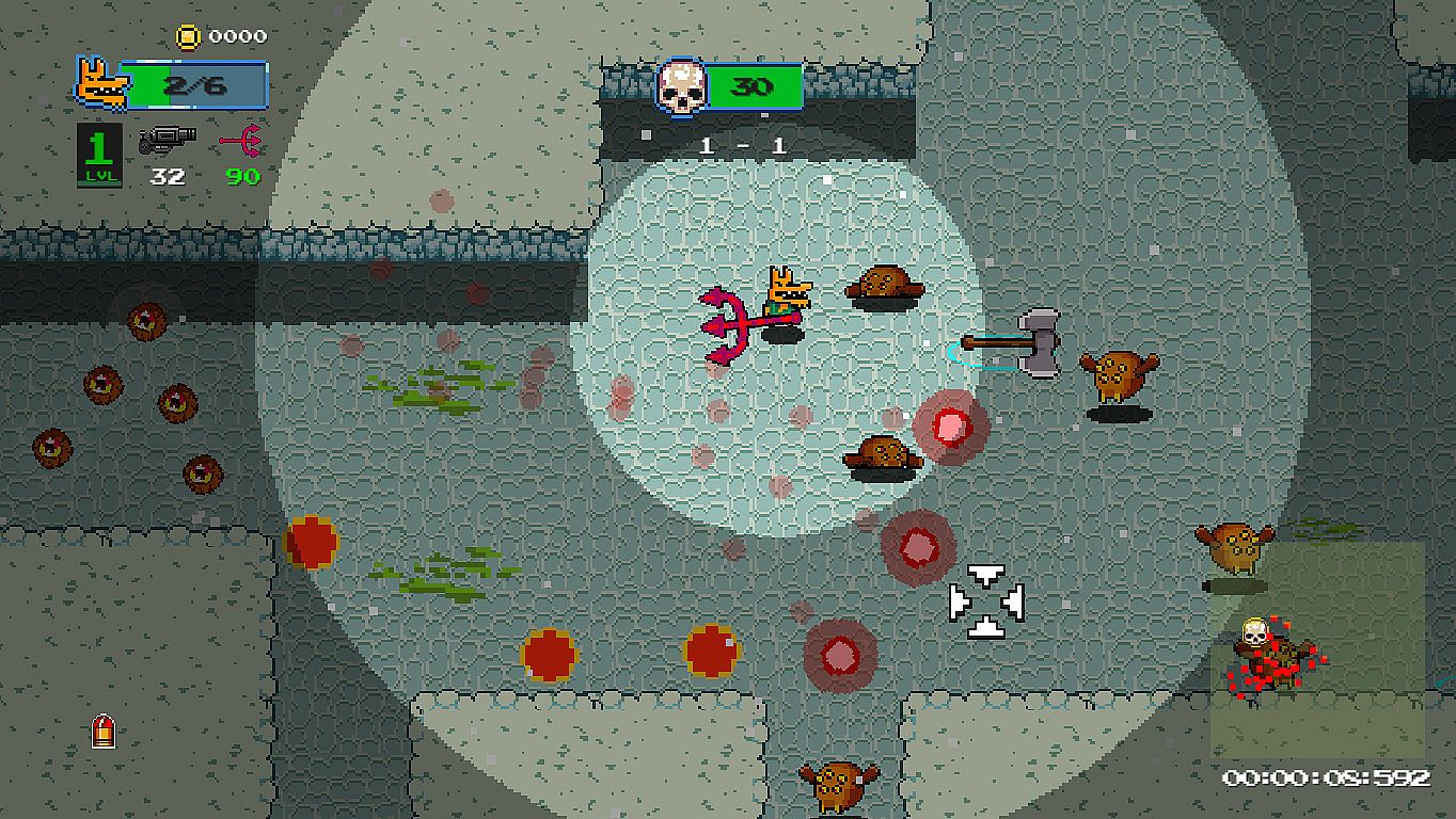 The fast-paced action is spiced up with a variety of unique items and weapons found throughout the procedurally or randomly generated levels.