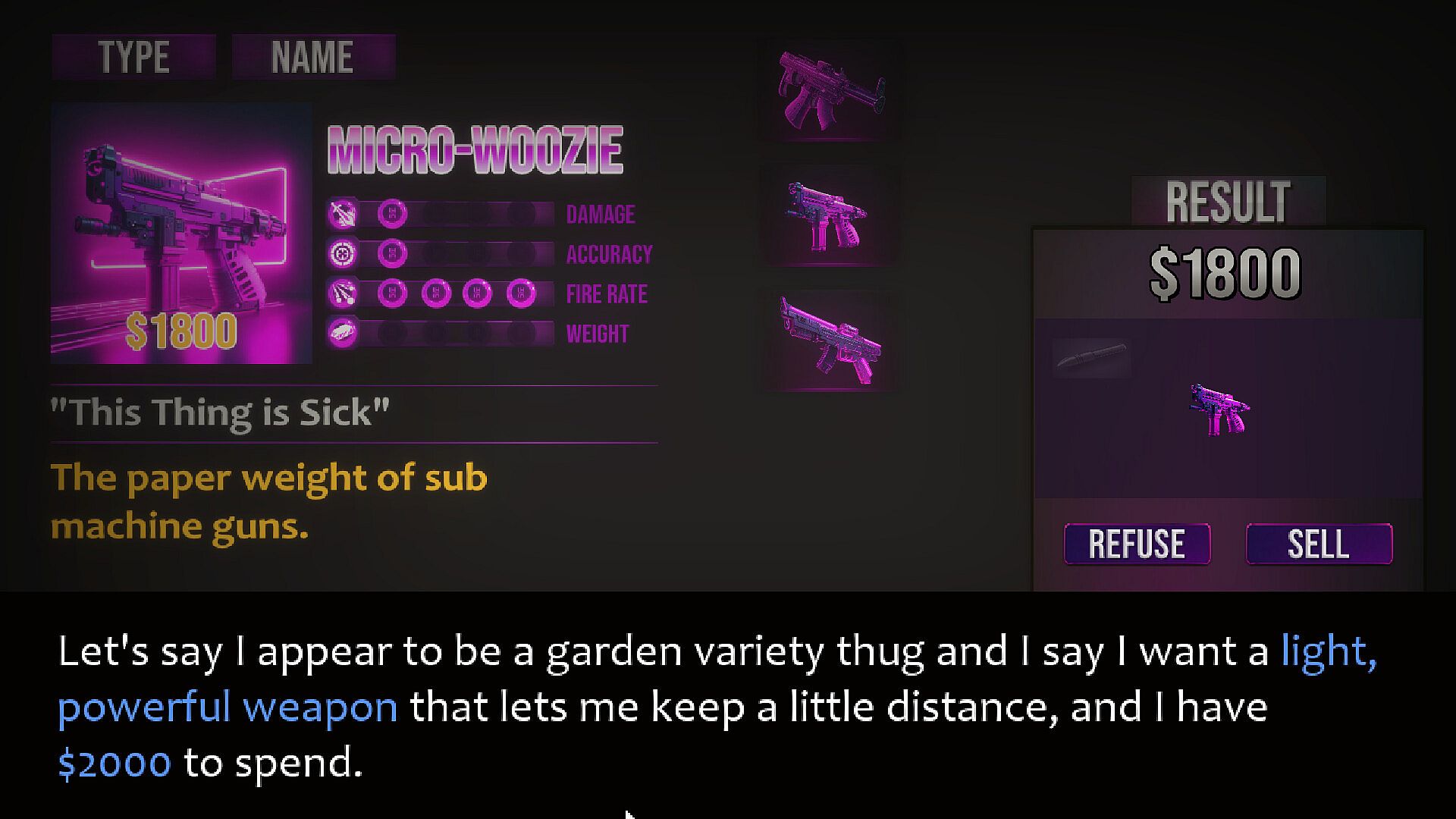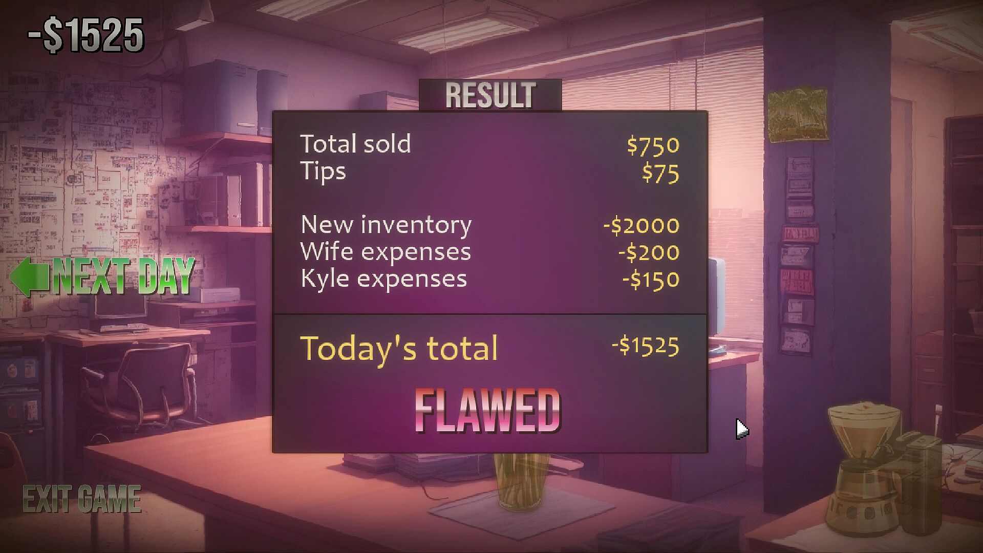 Take on the role of an arcade owner who is desperate to make ends meet. Your method of cashflow... selling guns to anyone who walks through the door, just not the wrong people...