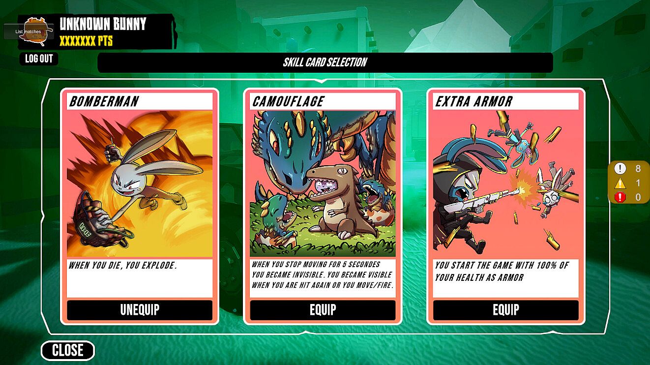 While your main target is the opposing team, the Zombunnies won’t make it easy! These relentless, zombified bunnies spawn throughout the map, adding an extra layer of challenge. Work with your team to fend off waves of these bouncy foes, but stay sharp – they’re just as dangerous as the players you’re fighting!