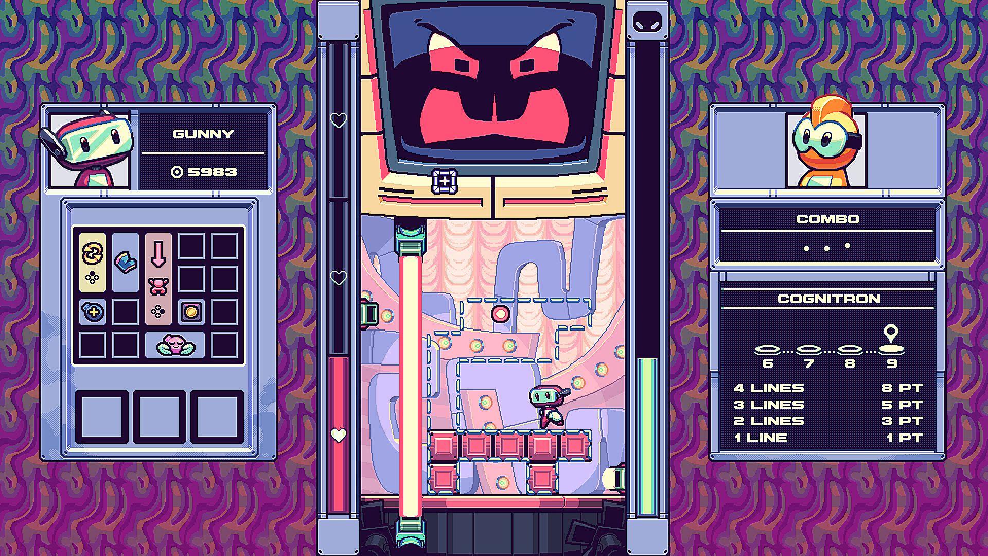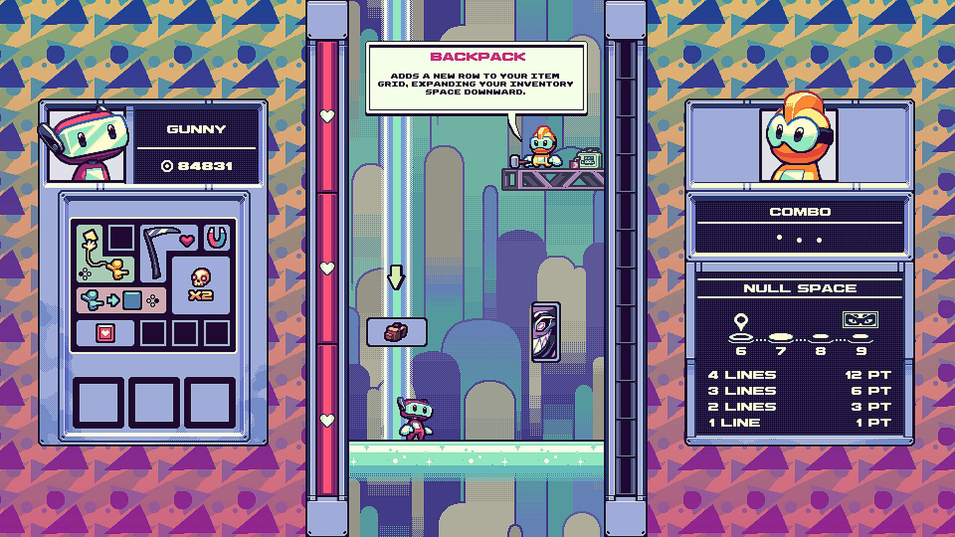 Gunny Ascend transforms the classic block-stacking puzzle formula into a fast-paced, genre-bending experience. Blending roguelite progression, adaptive platforming, and a dimension-hopping story full of chaos, charm, and surprise.
