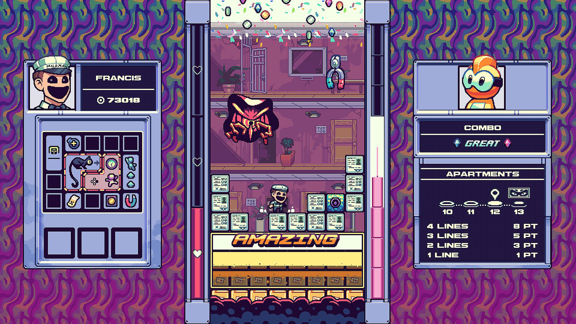 Reimagine the falling-block formula with real-time movement, tactical platforming, and roguelite unpredictability. Each run brings new hazards, enemies, and item combinations—challenging you to evolve your approach every time.
