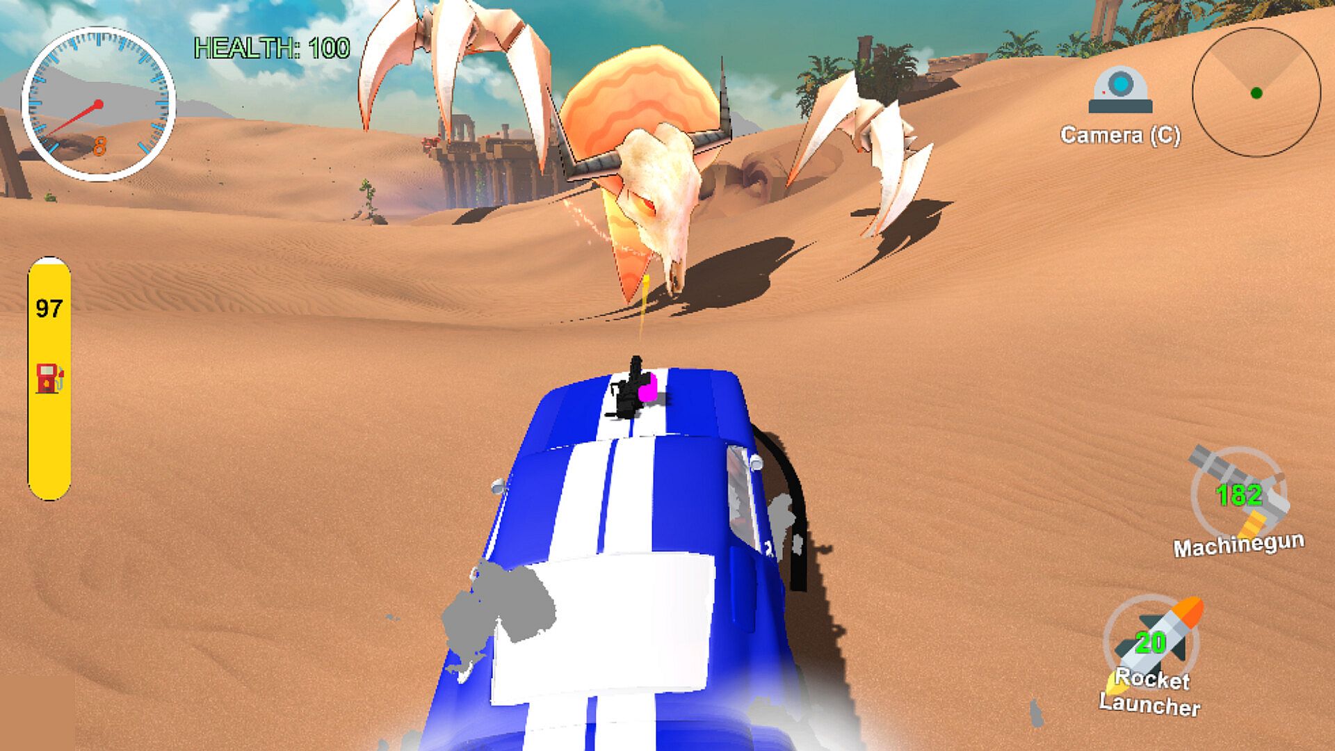 You are a war car, forged for battle, with missiles on the hood and a thirst for destruction under the chassis. There’s no racing here—only surviving, shooting, conquering.