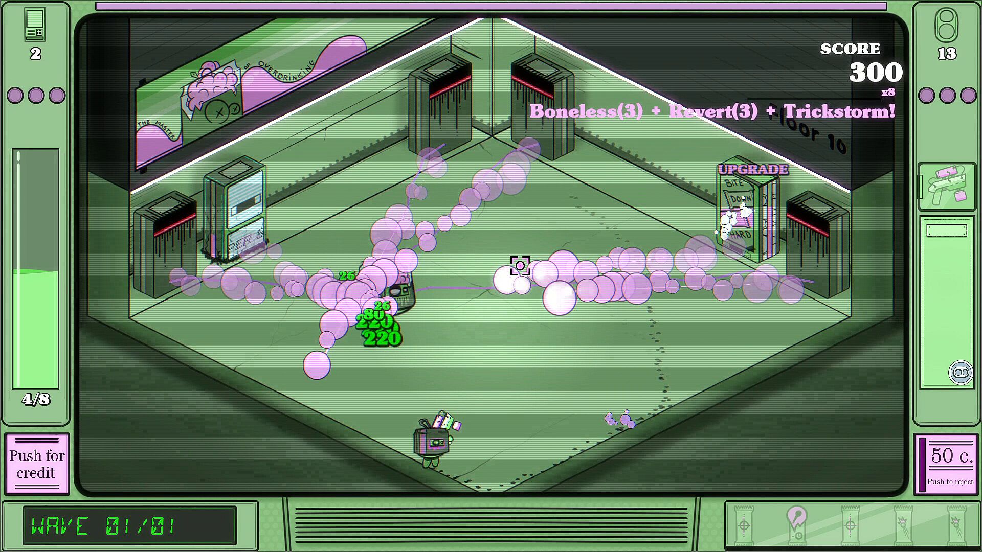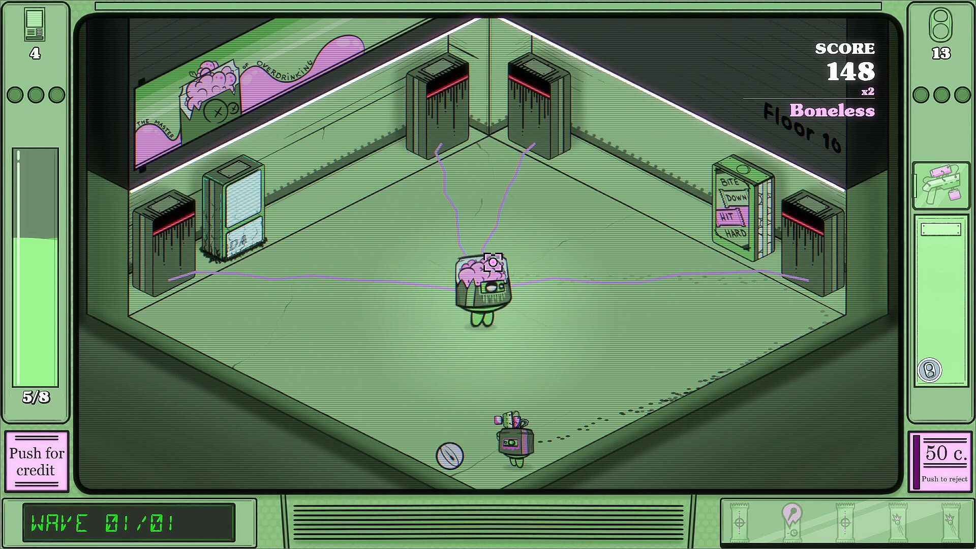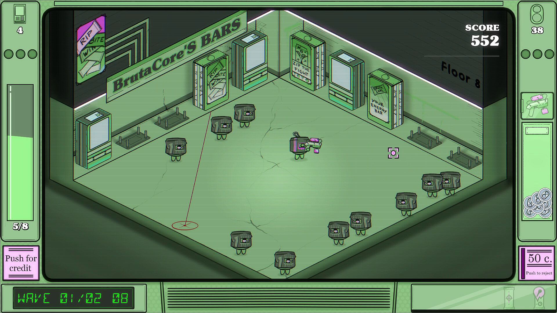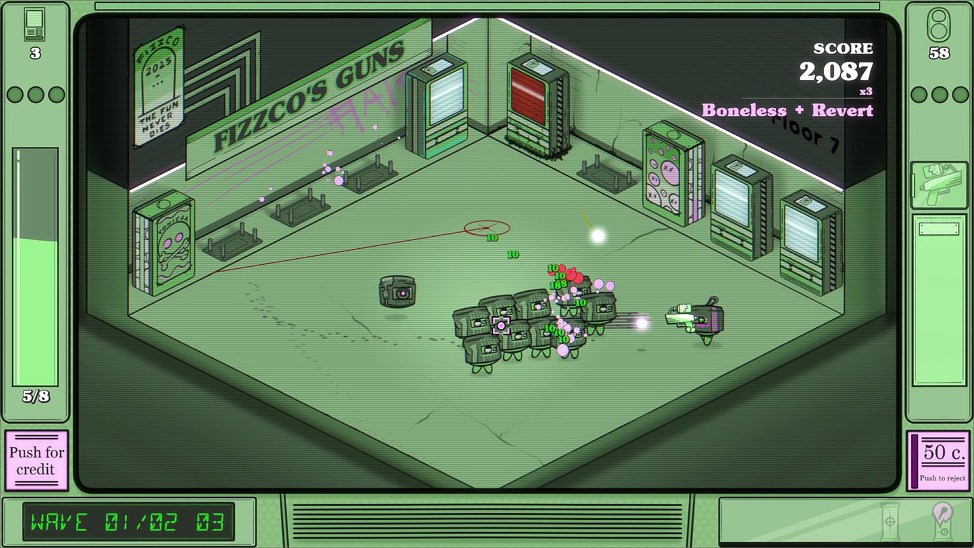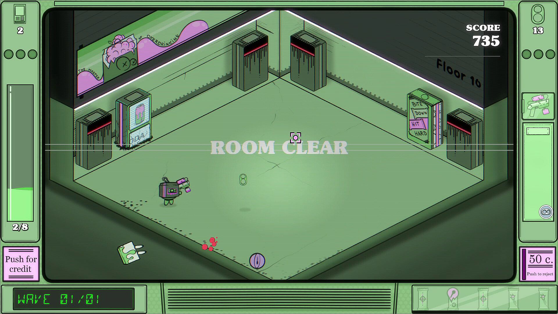• Vending Machines as allies: Activate and upgrade VMs to gain rear cover. Some drop powerful gadgets that trigger your Super Shot.