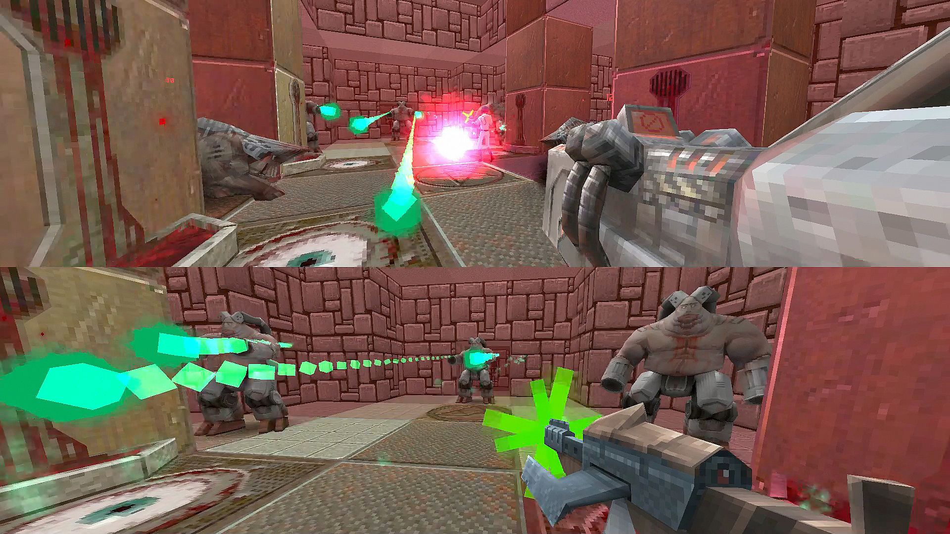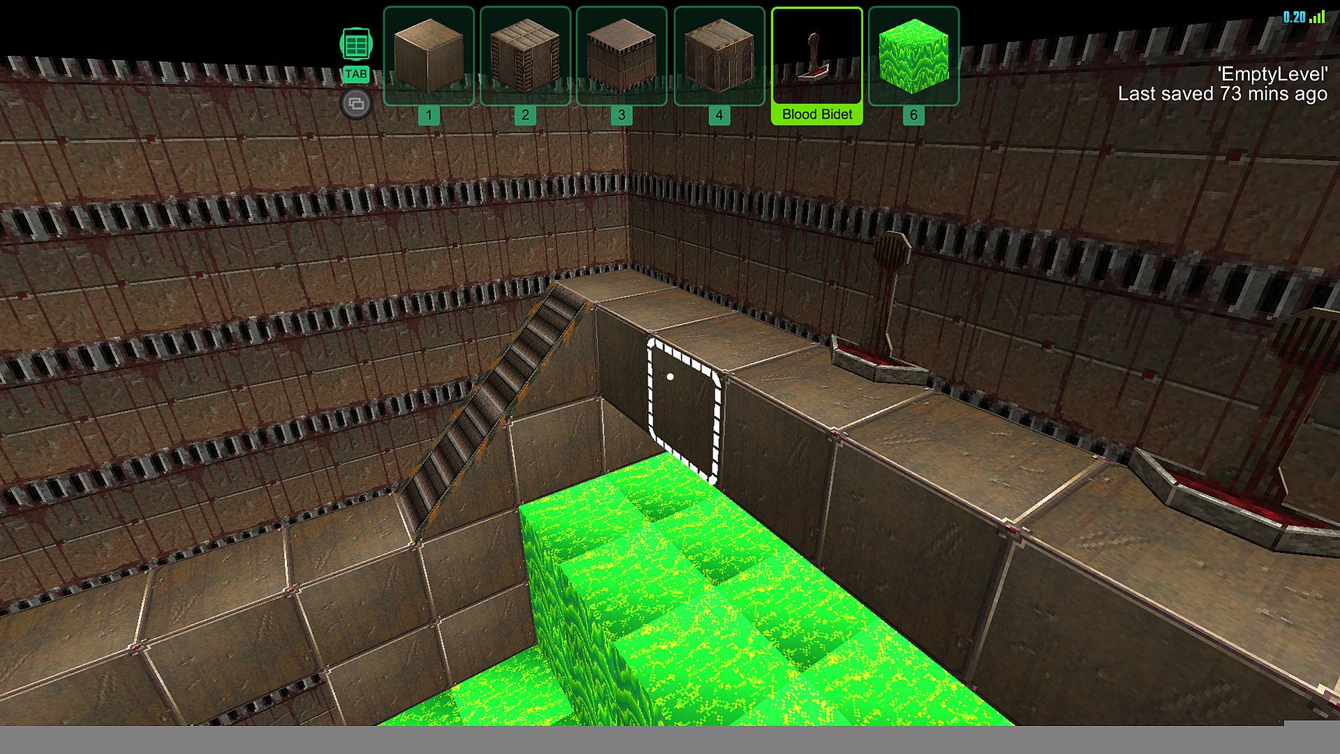 The game is organised into themes taken from the entire genre of FPS games, from the early classics to the modern triple-A stealth and war shooters. Each theme set contains unique world building blocks, player models, enemies (and bosses!), music tracks, skyboxes, special level elements (like traps and teleporters) and--of course--GUNS (plus bombs, bats, swords, flamethrowers, chainsaws, rocket launchers and much, much more. 38 weapons planned so far!). Assets from different sets are meant to be combined freely when building your worlds and the selection of content contained in each one has been carefully selected and planned out to avoid redundancy and to represent the truly iconic parts of the game it was inspired by.