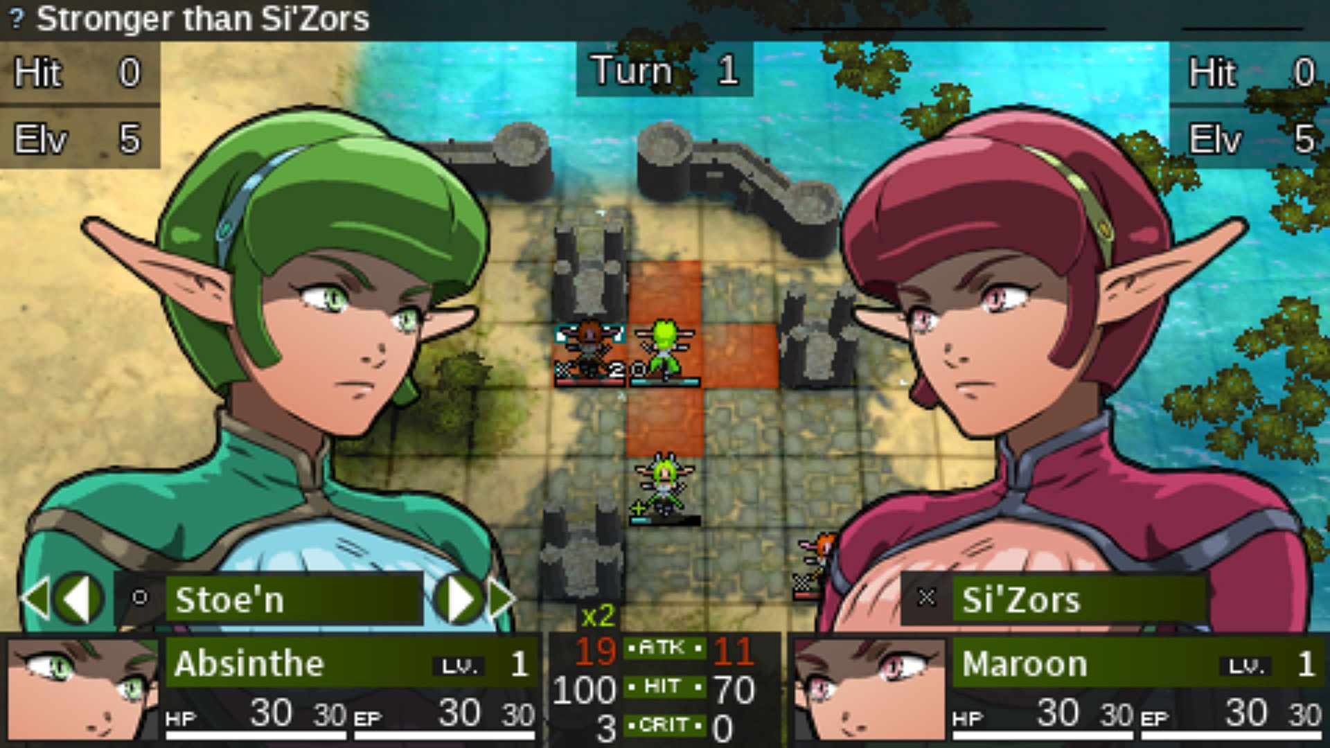 Effeciently defeat enemies by taking advantage of your unit's strengths, terrain and equipment effects. Use the stance system to eliminate random chance in battle, but at a price.