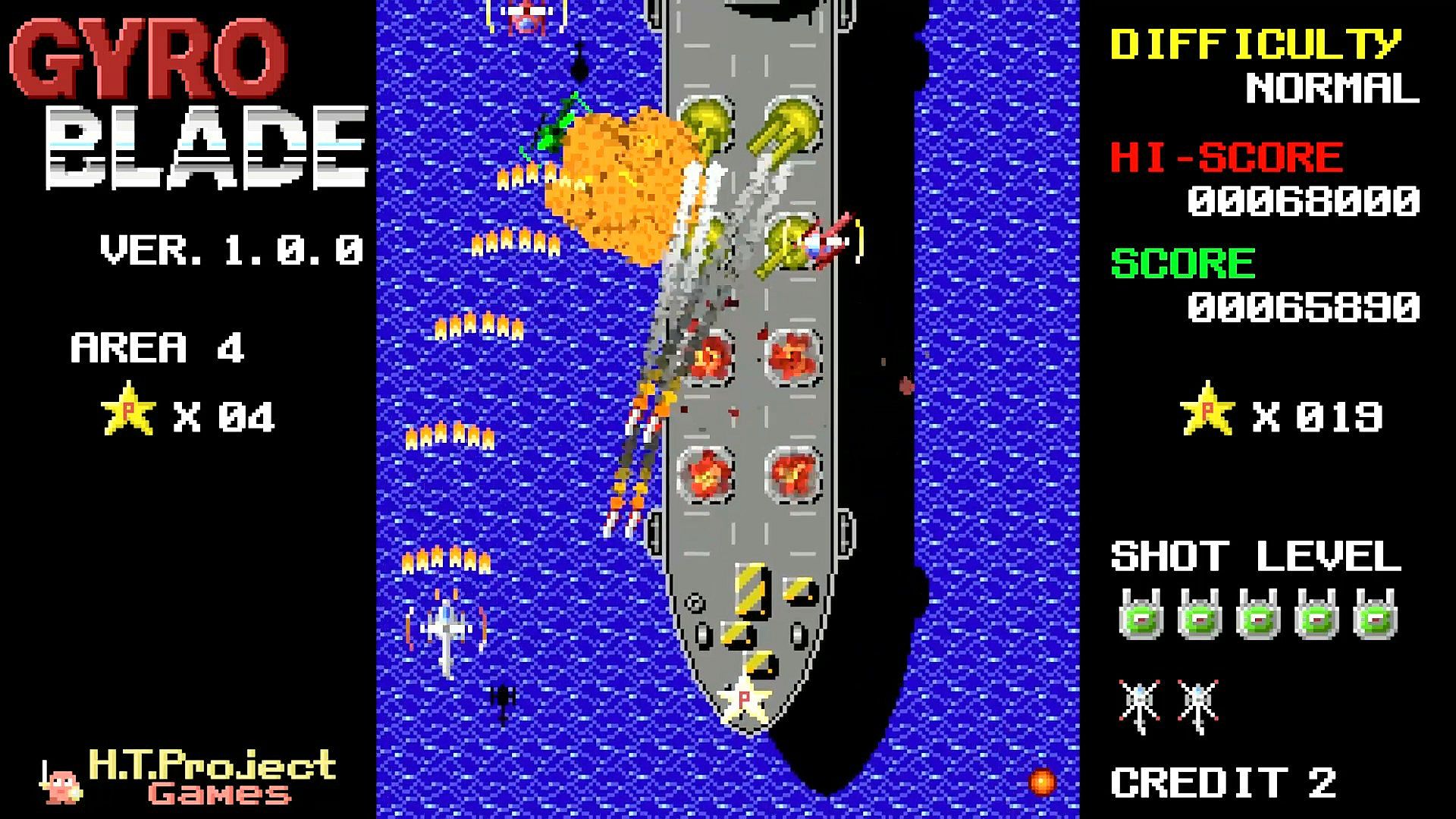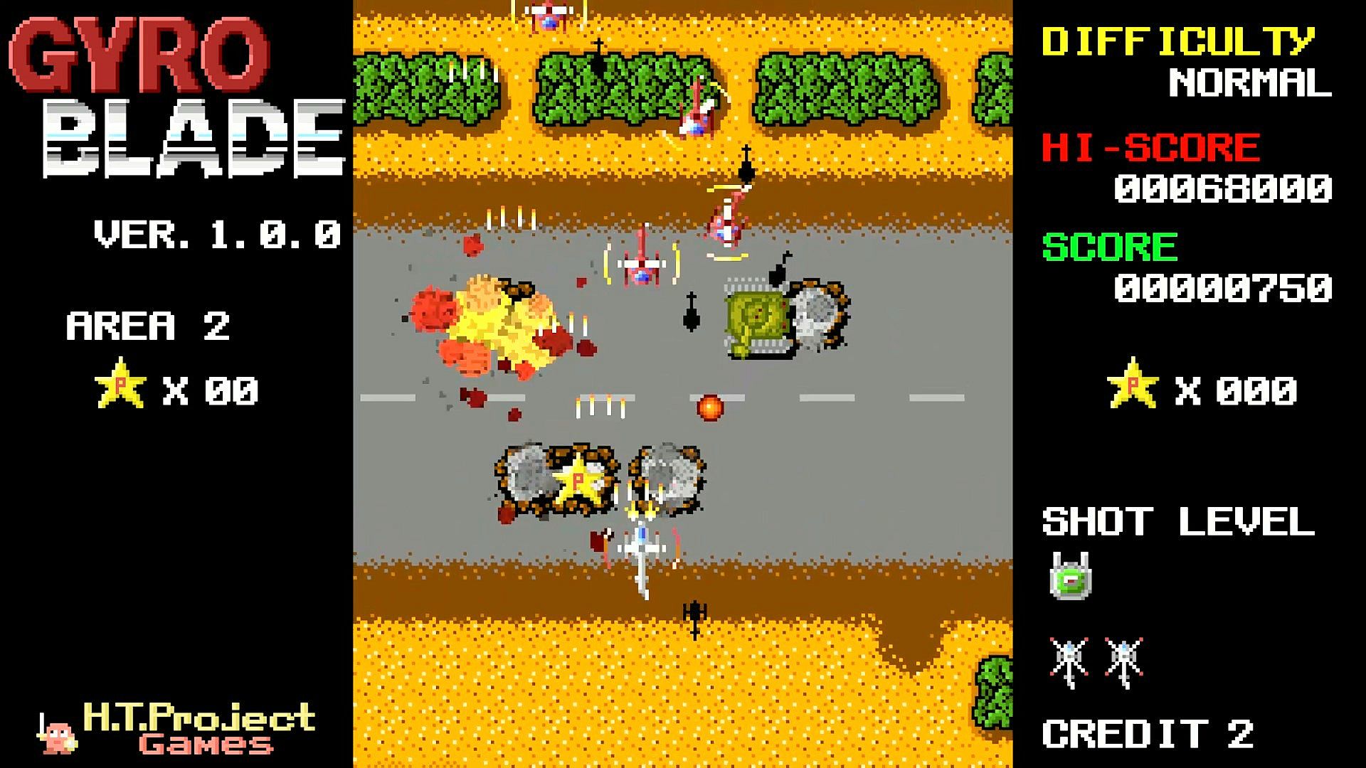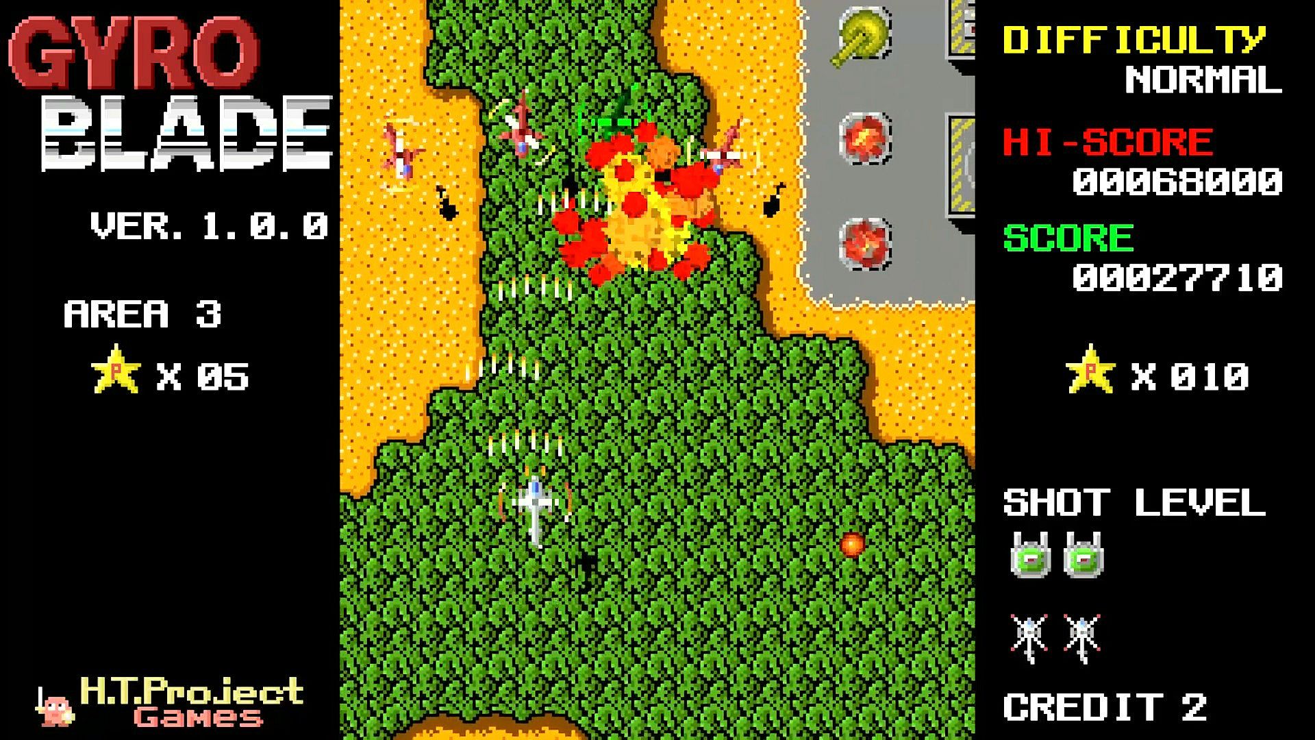 A 2D vertical scrolling simple shooter with retro-style pixel art.