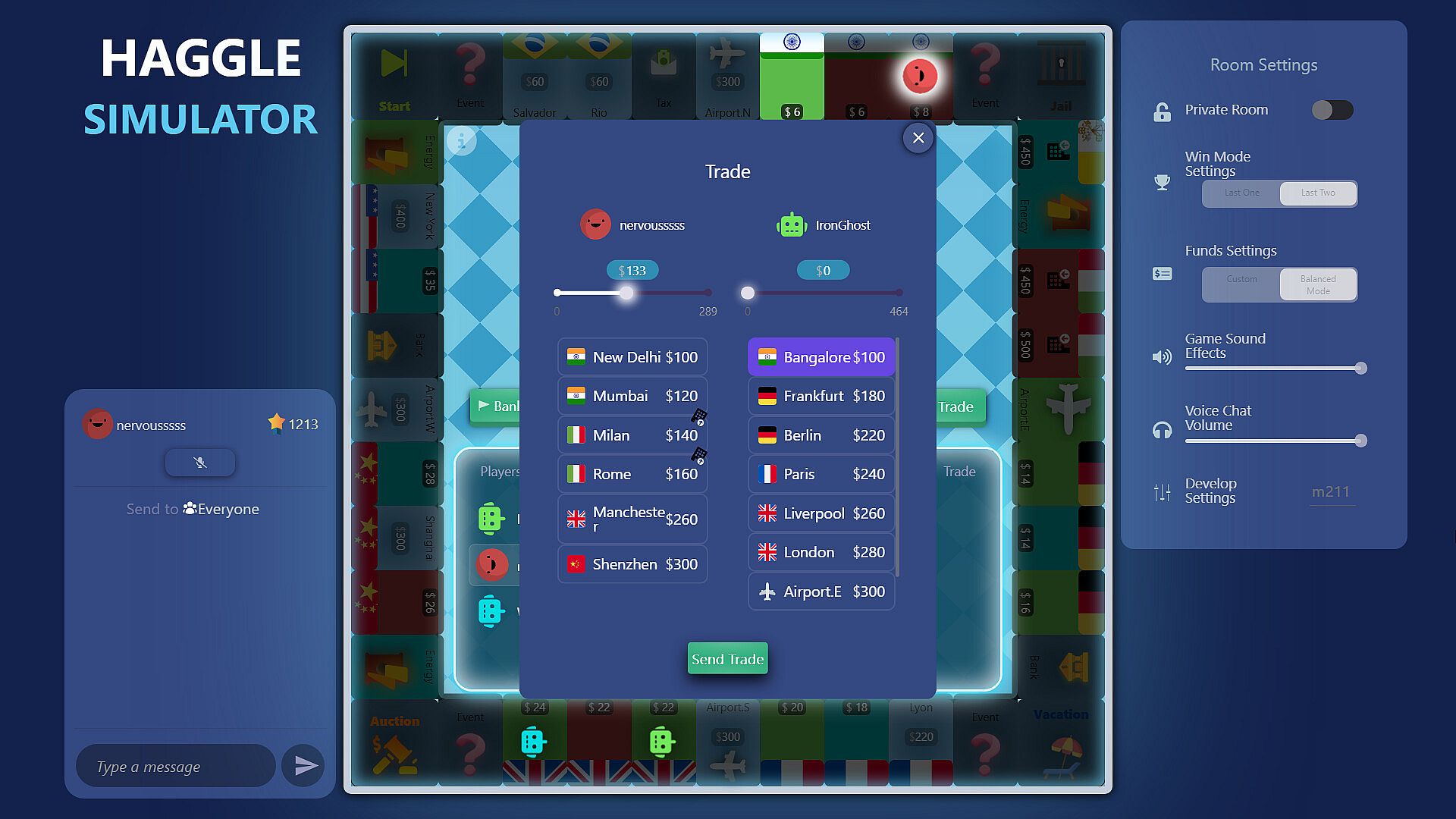 A Monopoly-style board game focused on negotiation, trading, and bidding between players.