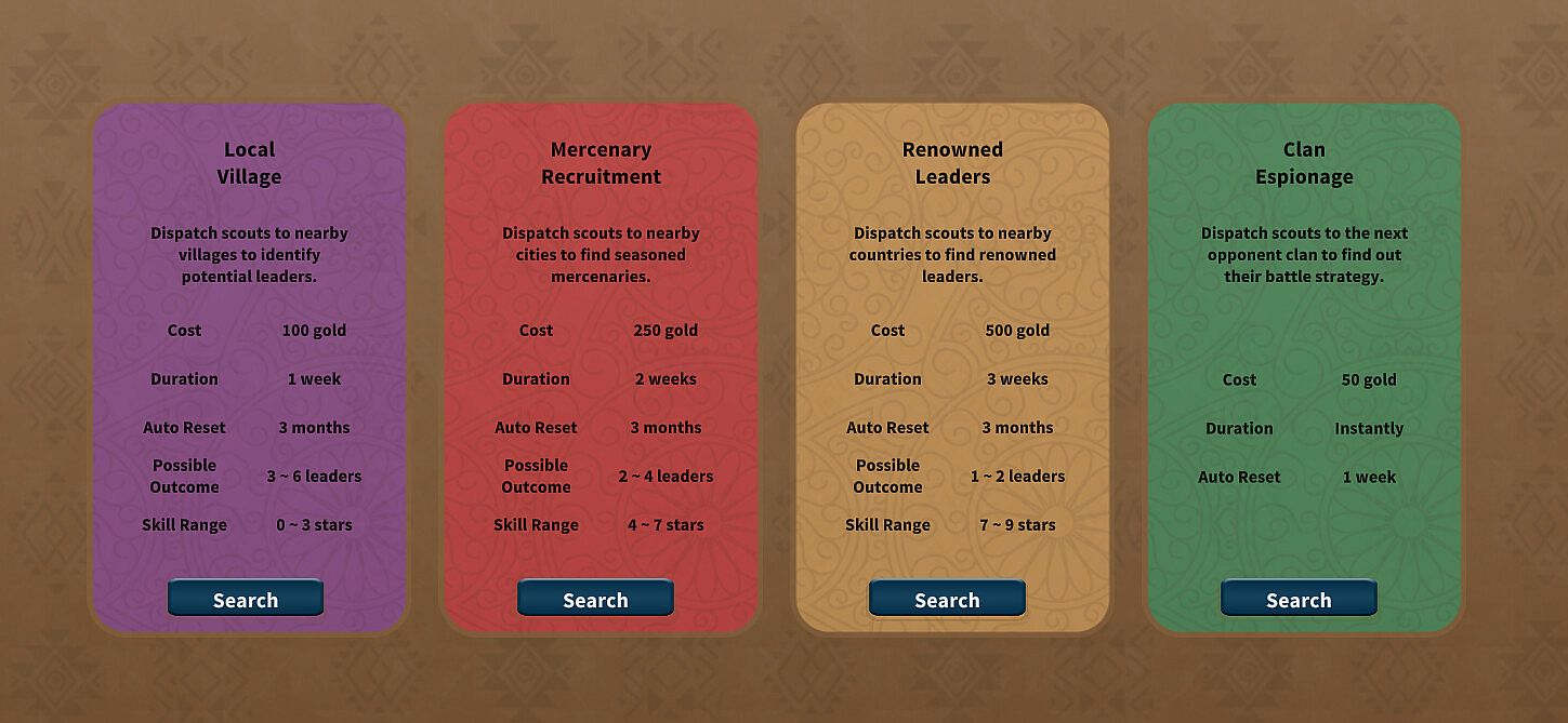 • Manage Your Army: Scout for new recruits, train your commanders, and manage resources to strengthen your army.