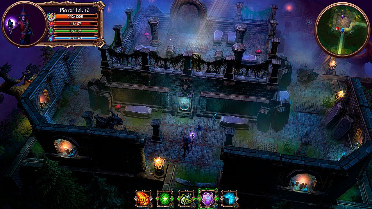 One late Halloween night, a mage known by the name of Saref was awakened by some rustling noises in his room. When he opened his eyes, he saw an ugly little devil stealing a magic stone from the table. Saref tried to catch the thief and save the crystal but suddenly looked out the window and saw terrible things… Everything was burning, seething; the fearful monsters, which until recently were the festive decorations, roamed the streets and swept everything out of their paths... People ran in horror to hide in their homes and board up all windows and doors. Chaos and destruction flourished in the town. The dark forces broke free and turned everything upside down. Now Saref must win his magic stone back and overcome the minions of evil before this magic night ends. But the monstrous creatures and demons on your path won’t surrender that easy…