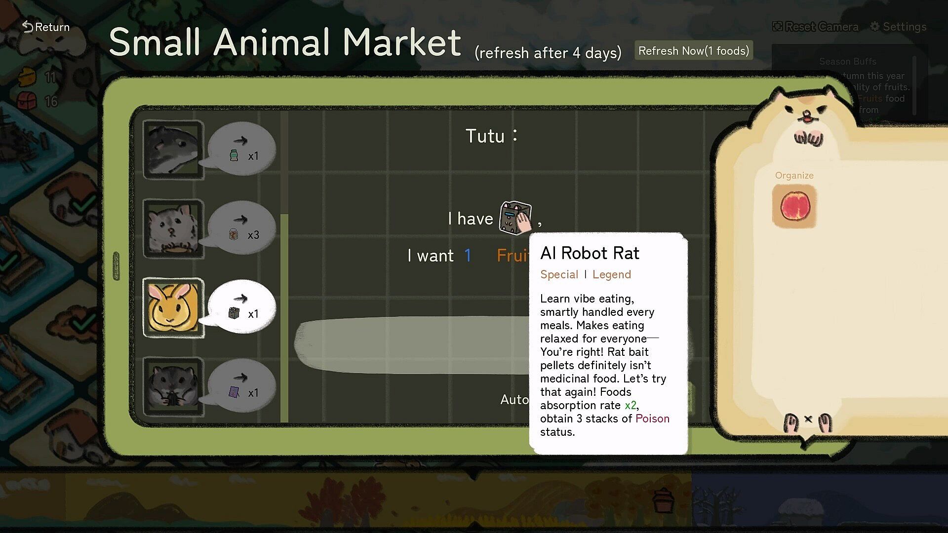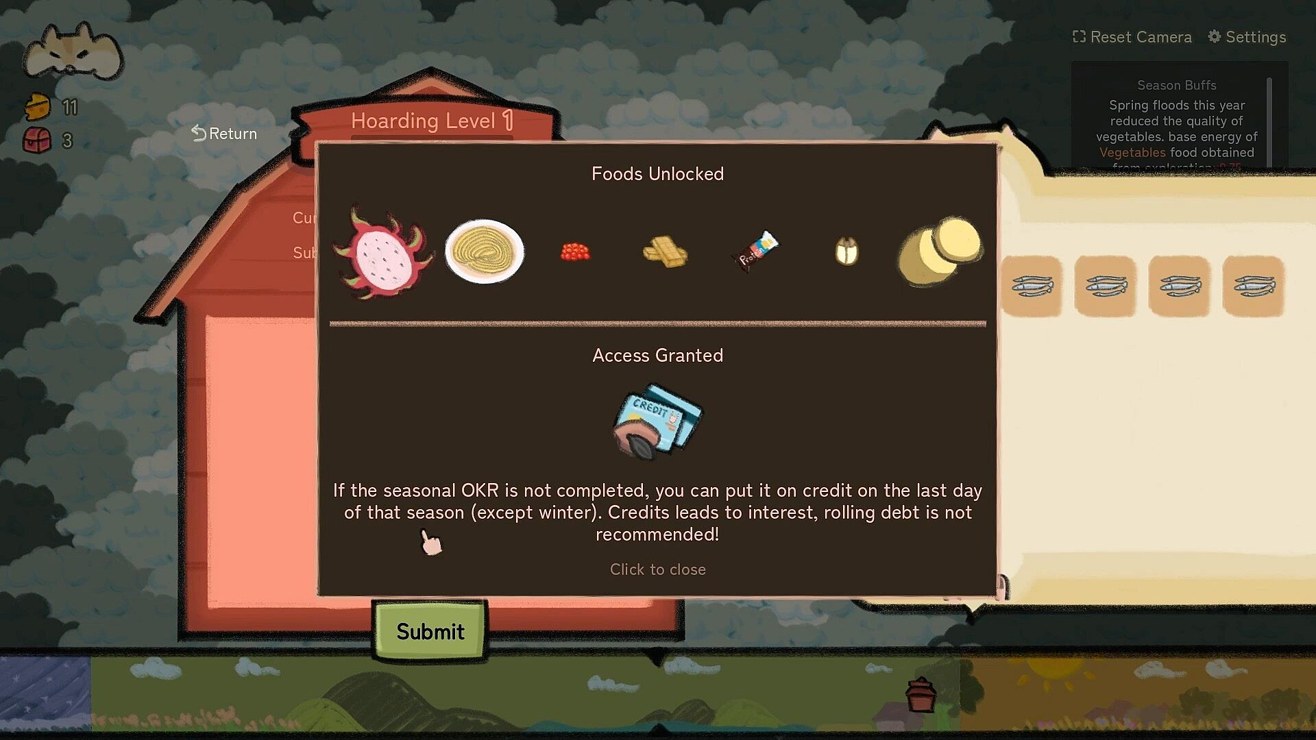 After upgrading your hoarding level, the barn will introduce you to more food and unlock new content access, improving your survival skills