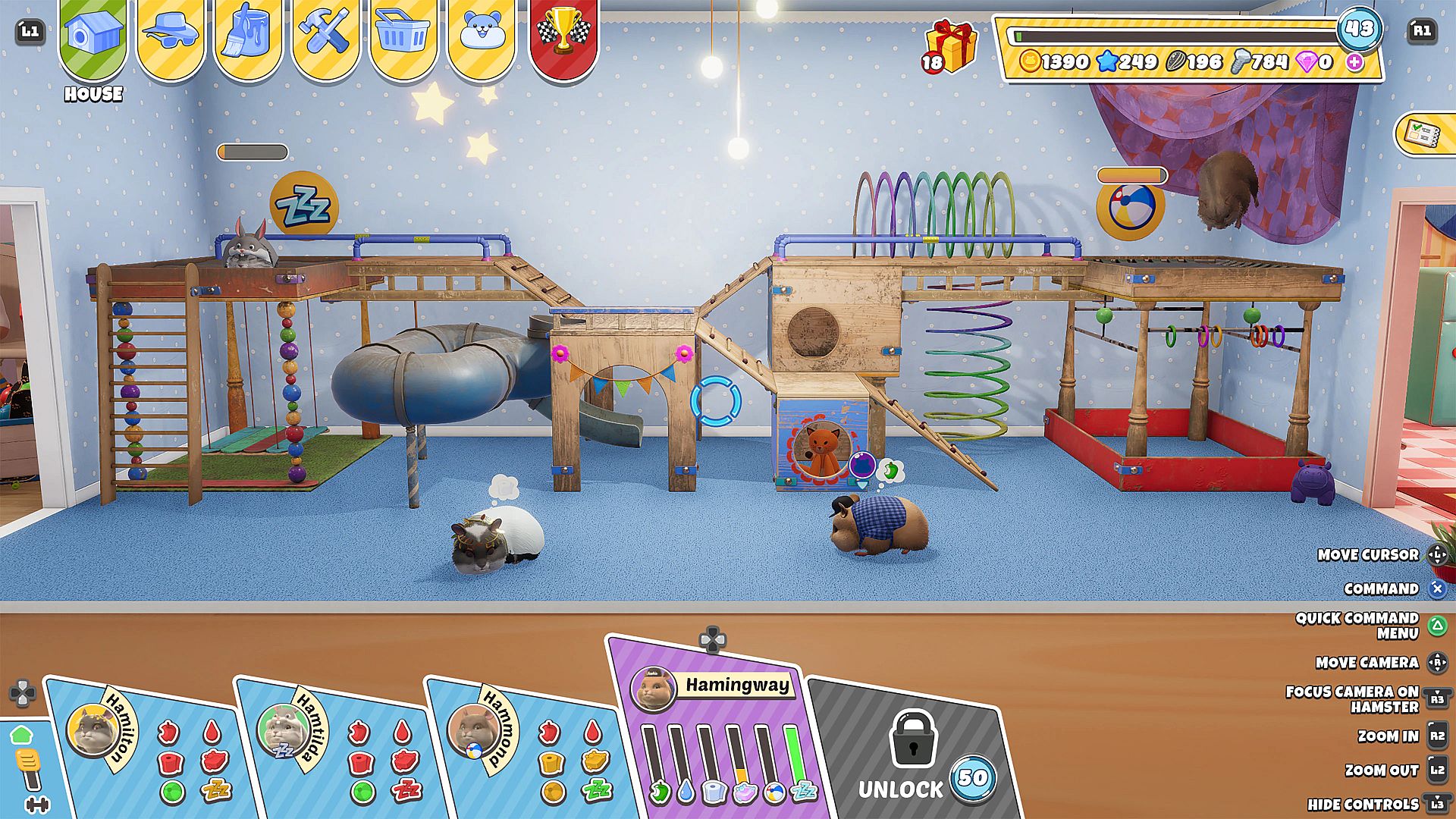 Name your hamsters and customise them – there are over 100 cosmetic items!