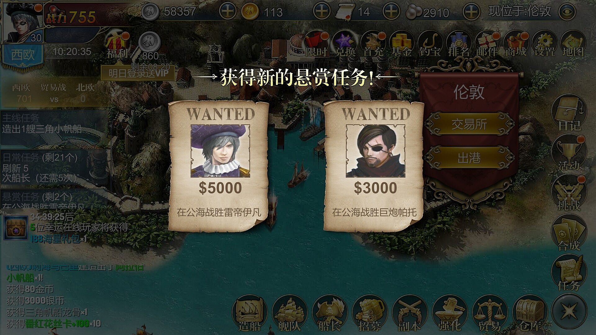 Players play as the owner of a fleet in the game, earn silver coins and prestige through trade, obtain crafting materials for various ships through battles, and then continuously upgrade their ships into better ships. Equip yourself with a variety of gear and recruit legendary captains to boost your power.