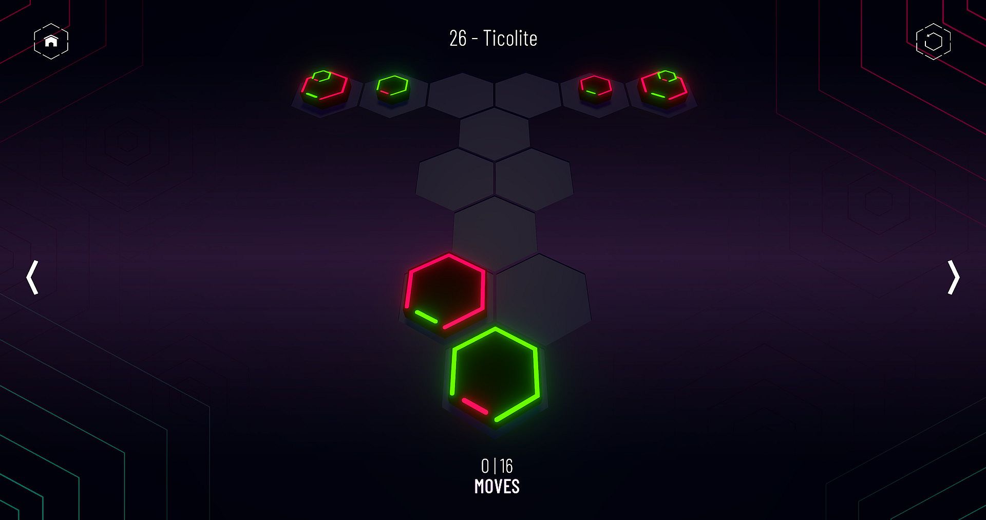 Unlock blocked hexagonal cells by building a tower of the same color,