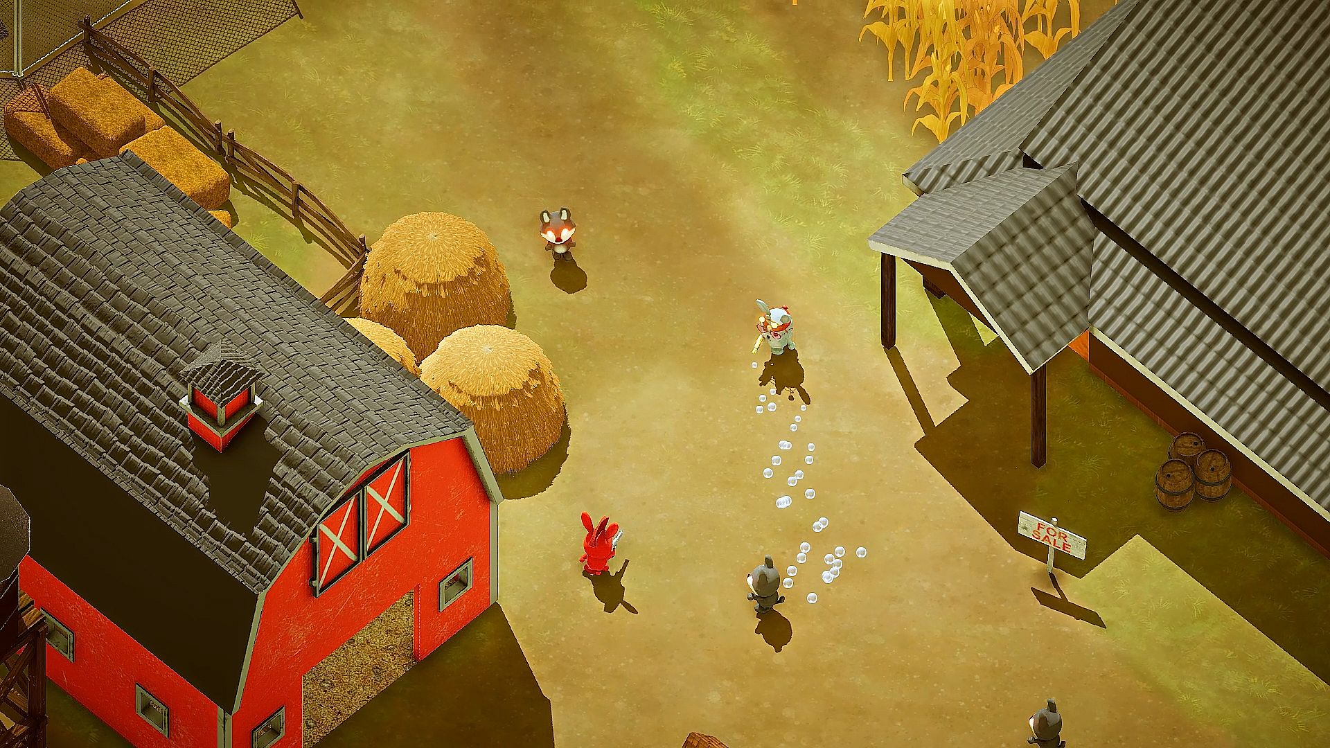 Multiplayer top-down shooter Hanz Puppetguns puts you in control of one of four plush rabbits. Battle zombie wolves that lunge to tear into you while clashing with other players over loot. Random events keep every match unpredictable, forcing quick shifts based on your gear like a powerful machine gun or a basic shovel. The core loop demands survival through constant adaptation in this free-to-play indie action game on PC. Grab from a huge array of weapons and tweak your rabbit's look with character customization. Players who thrive on absolute randomness and fierce competition will keep coming back for more chaotic fights.