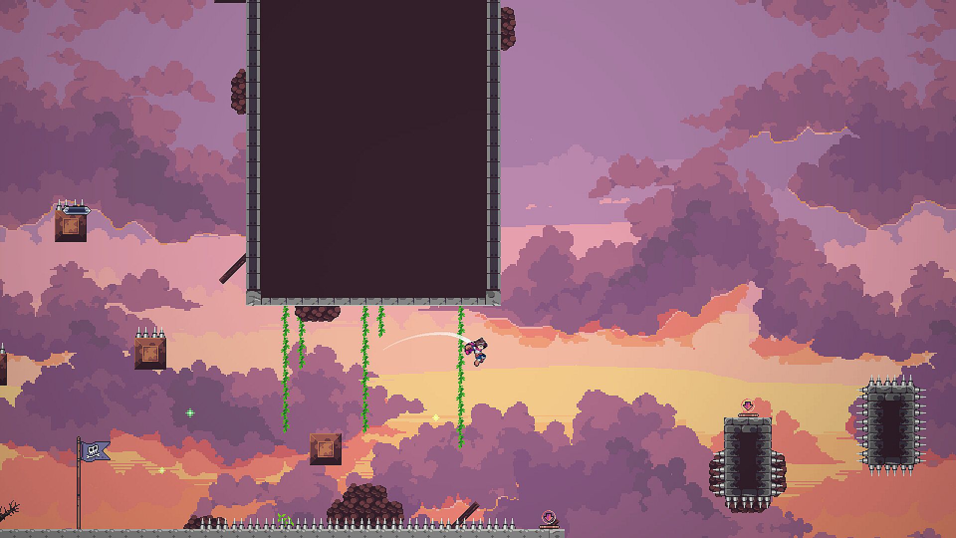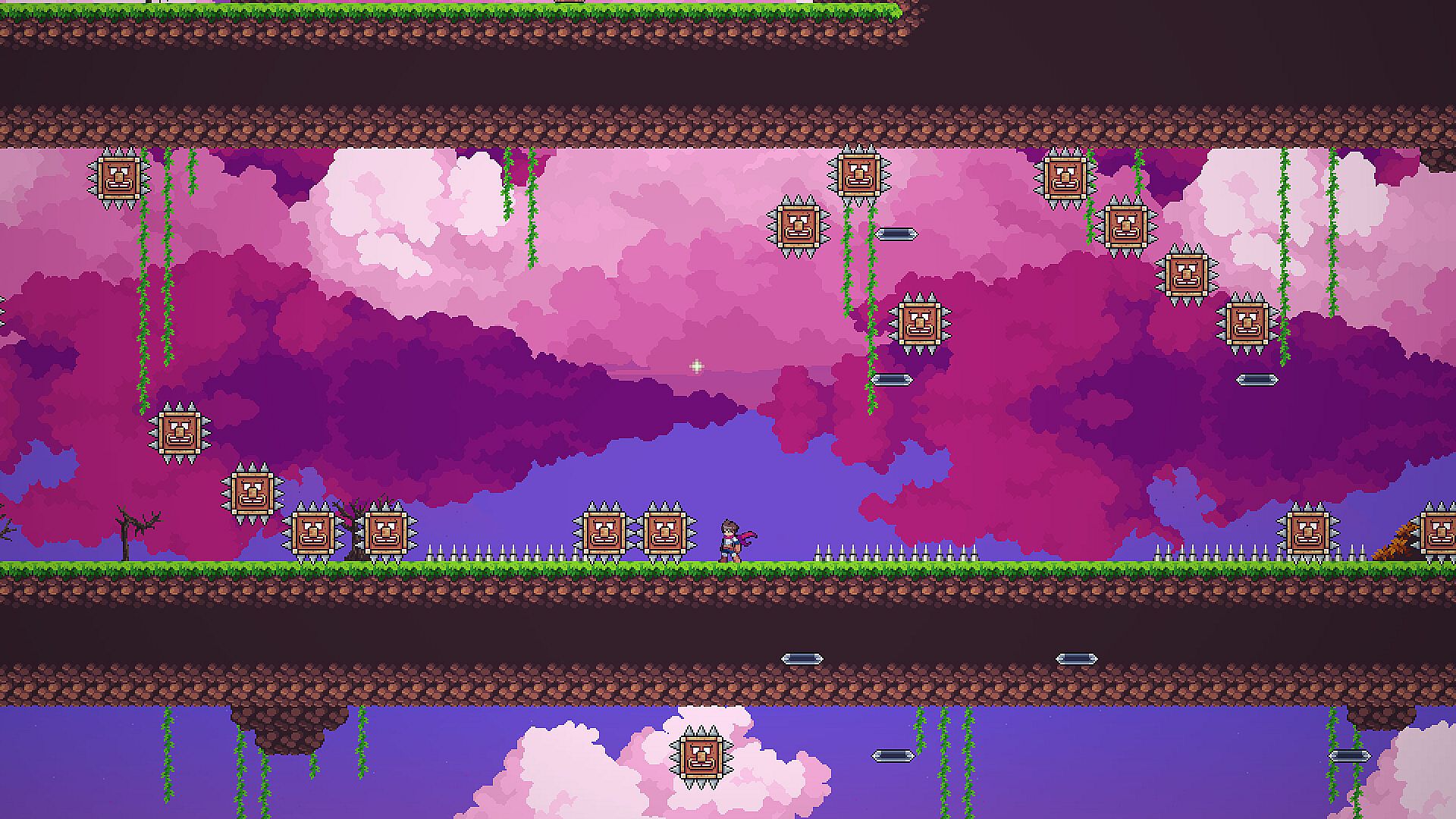 The levels are not small, but they are built in such a way that you will not get lost. There are many variations of traps: spikes, collapsing platforms, flying blades...