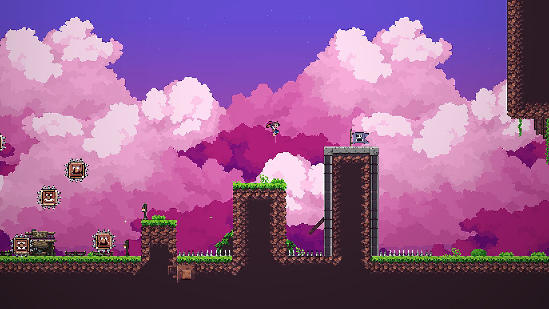 Large, multi-tiered levels with open gameplay - run, jump, and dodge spikes and clever mechanical traps.
