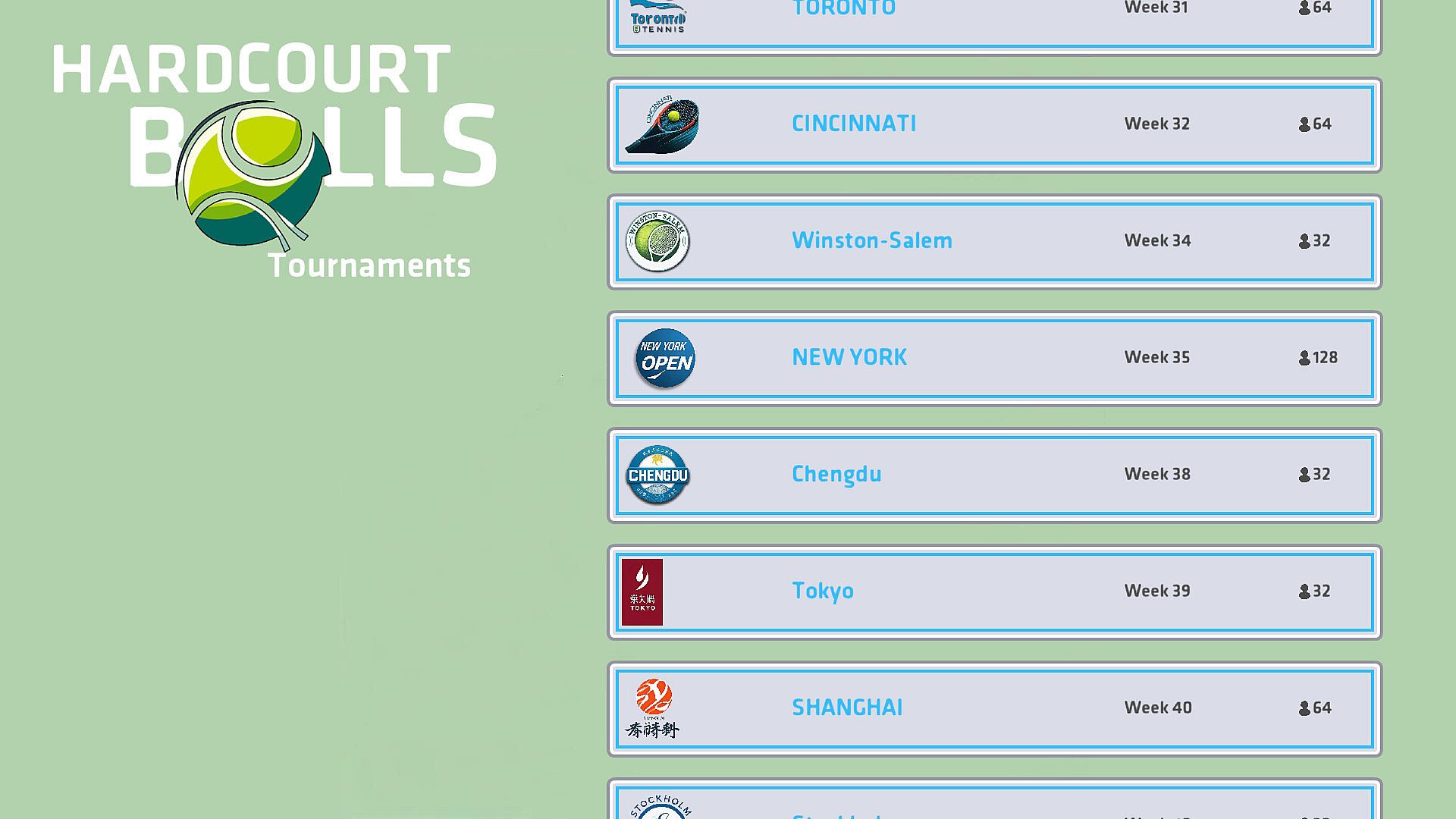 Hardcourt Balls is not affiliated with nor endorsed by any tennis organization. Any trademarks referenced are the property of their respective owners. Hardcourt Balls is set in a fictional universe and uses made up player profiles and event names; any similarities with real persons, events or organizations are purely coincidental. Please contact us so we can remove or edit any content you believe may unintentionally infringe on your property.