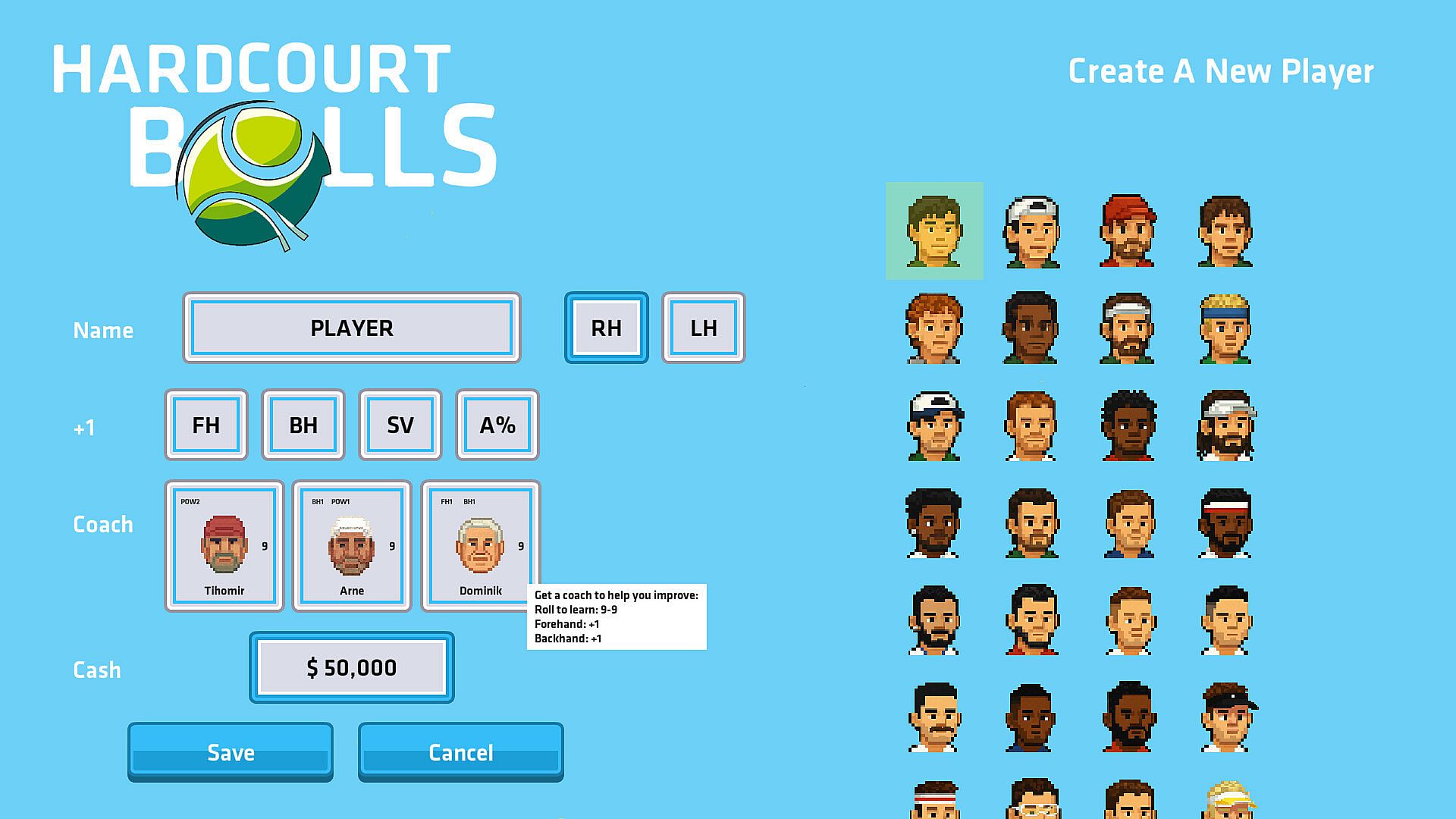 Harcourt Balls features a unique player progression system. Rather than simply gaining experience points, players have to find, hire and use the right coaches to improve their skills over time.