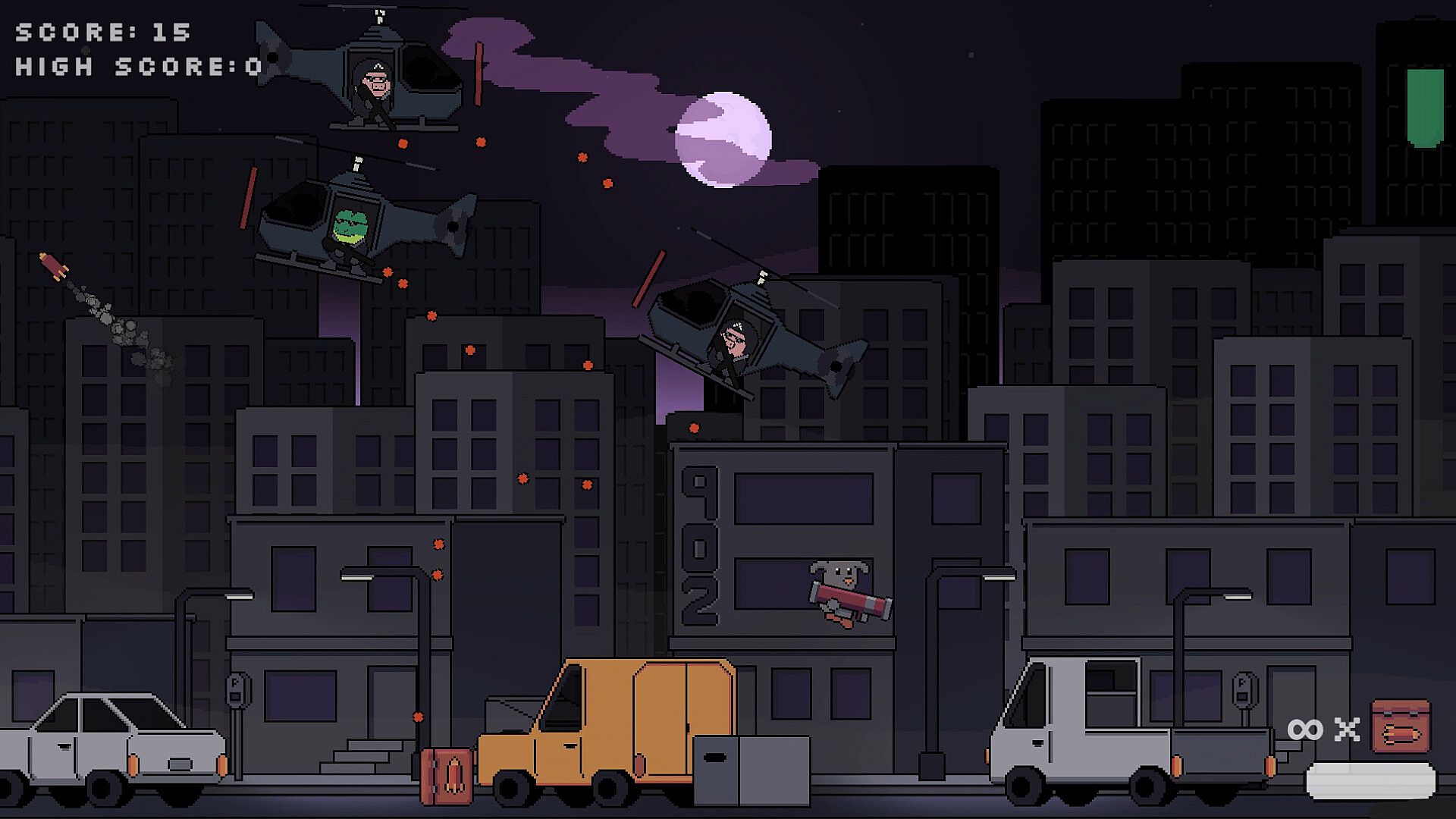 In a city shrouded in darkness and consumed by helicopters, bunnies must band together to eliminate the critters swarming the skies... Rack up points, climb the leaderboard, and prove who’s the ultimate bunny hero in this fast-paced battle for survival and bragging rights!