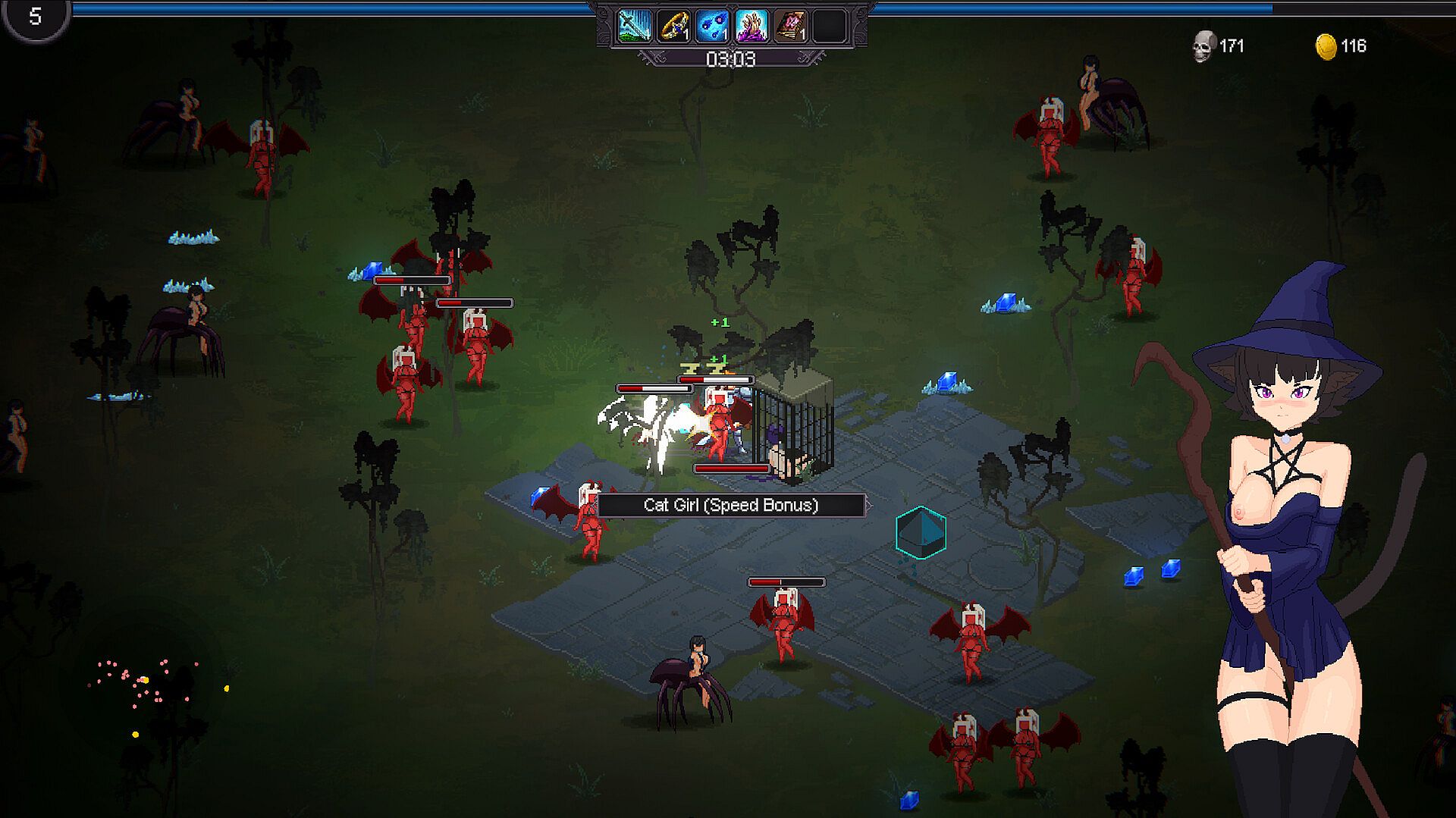 Every run you dedicate your skills towards one of the gods. Stay alive, slaughter the hordes, and they'll show you their appreciation by fulfilling your, and their, lewdest desires. Among a variety of gods with many breath-taking animated sex scenes and cute pixel art, you're sure to find what you want!
