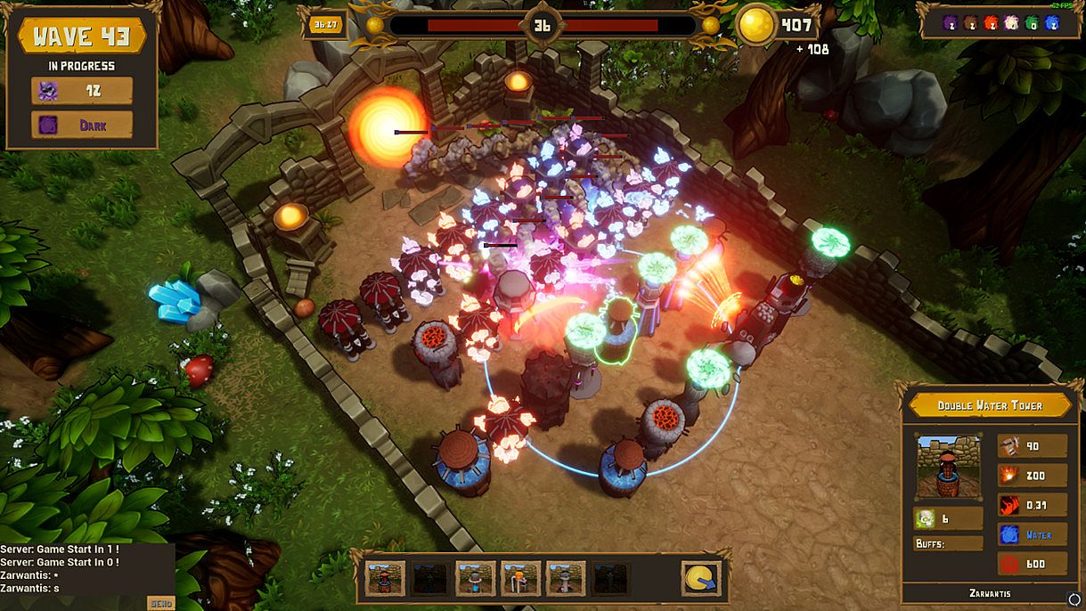 For every five waves you survive, you will be rewarded by the mayor with one Mana. This Mana can unlock more powerful towers: you have the choice to spend it in one of the six Mana present in the world. By doing so, you will learn how to build the tower related to it.