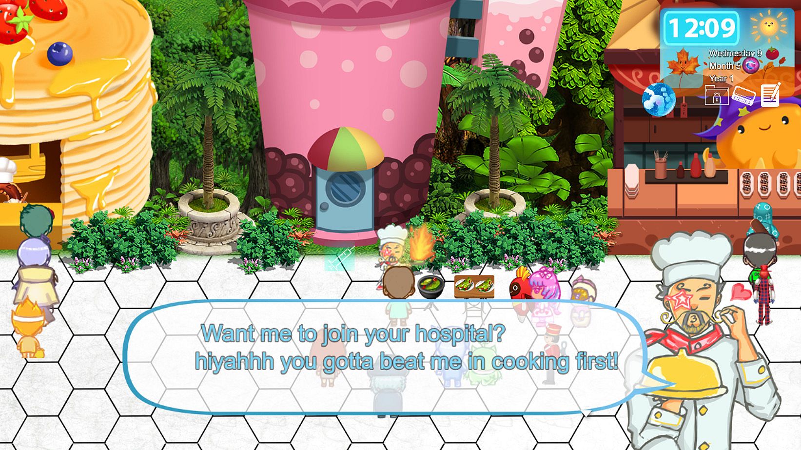 Play minigames to save patients' lives and raise town reputation and money. Create and discover special dishes through a variety of recipes.