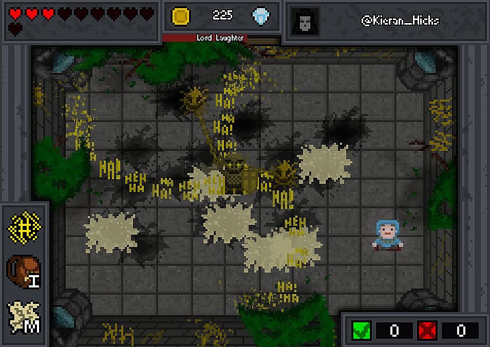 Hashtag Dungeon is an experimental game designed to assess how a game might use Twitter to store levels. It was originally developed as part of a third year dissertation at The University of Lincoln. We would like to thank Dr Patrick Dickinson, Dr Ben Kirman, Dr Kathrin Gerling, Dr John Shearer and Dr Oliver Szymanezyk for their support during the lengthy development process. We would also like to thank Robin French for her work on the Steam trading cards, Barney Oram for his sound design, Alex Saye for his work on several enemies, and Liz Rainsberry for her musical talents.