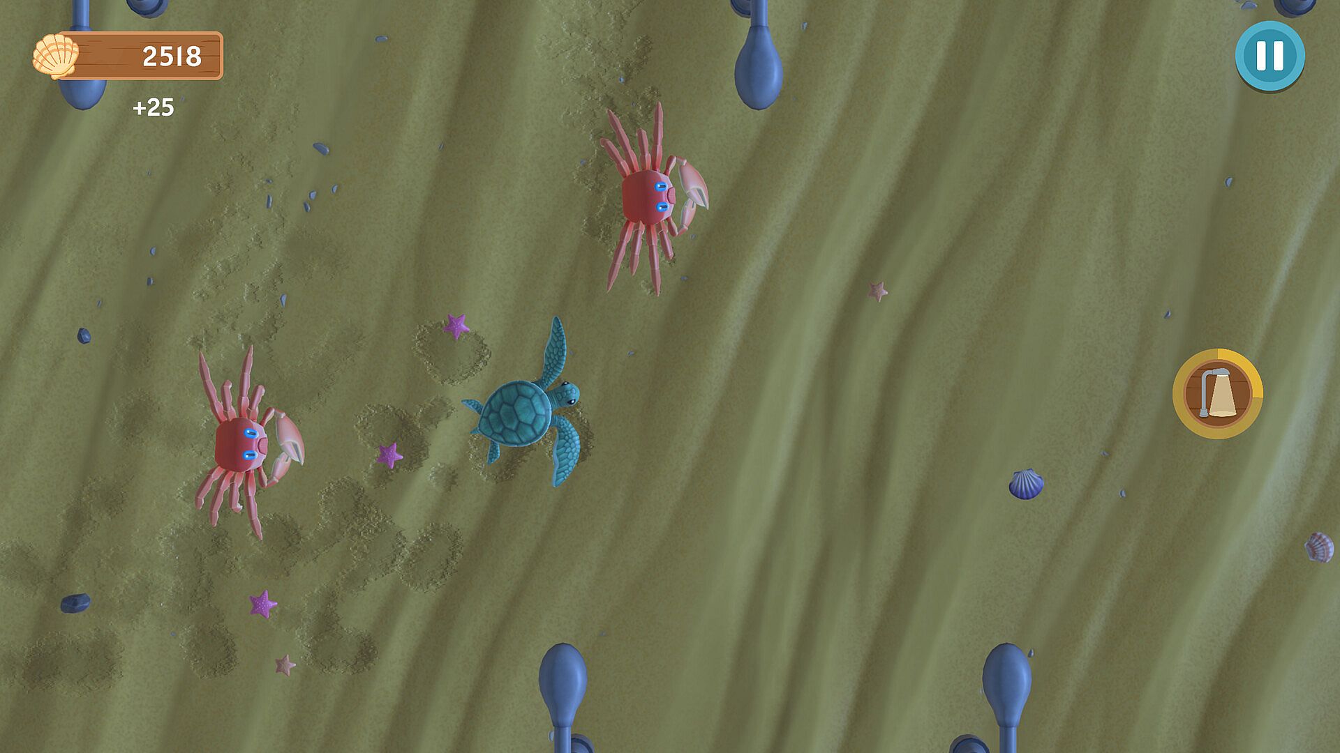 Hatchling Scramble is built around indirect control. The turtles move on their own, so your job is to watch, react, and protect.