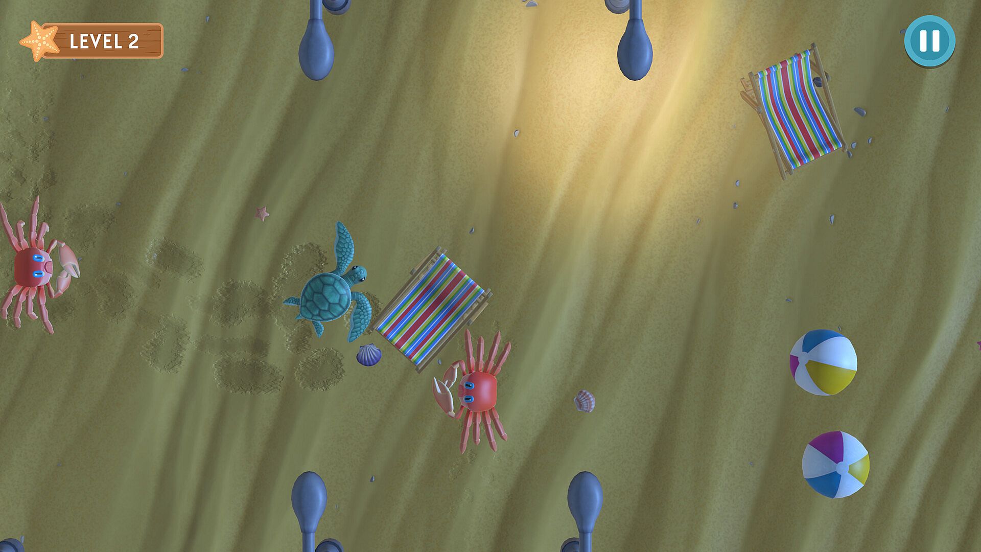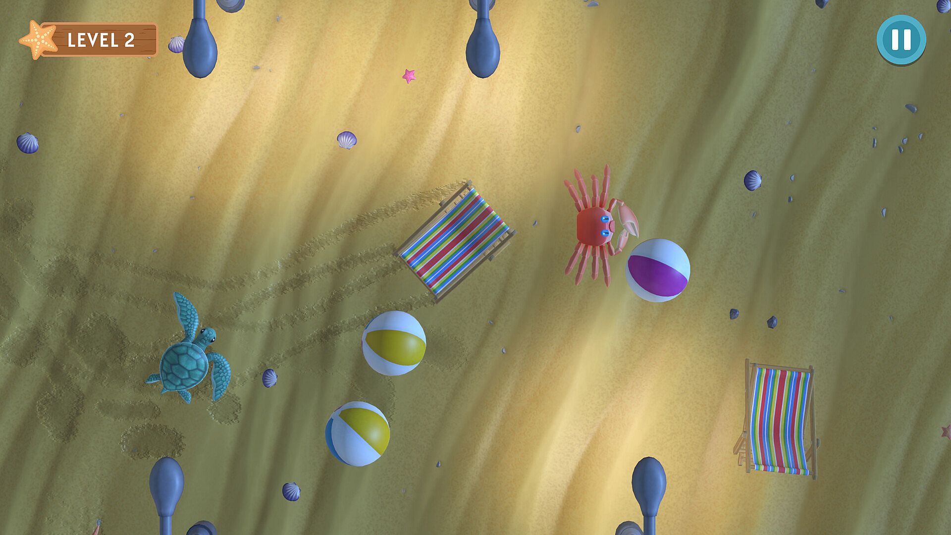 Story Mode - Progress through levels that gradually ramp up in difficulty. The beach gets longer, the turtle moves faster, and the crabs become more aggressive. You only have one life per level so if a hatchling doesn’t make it, you’ll need to start again.